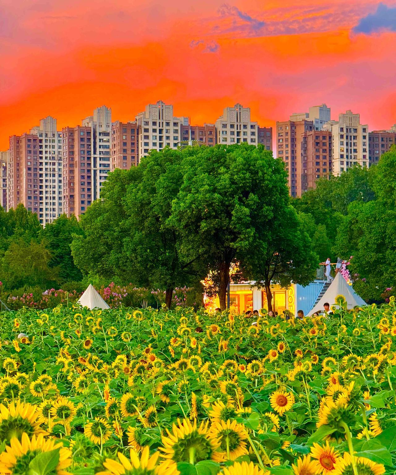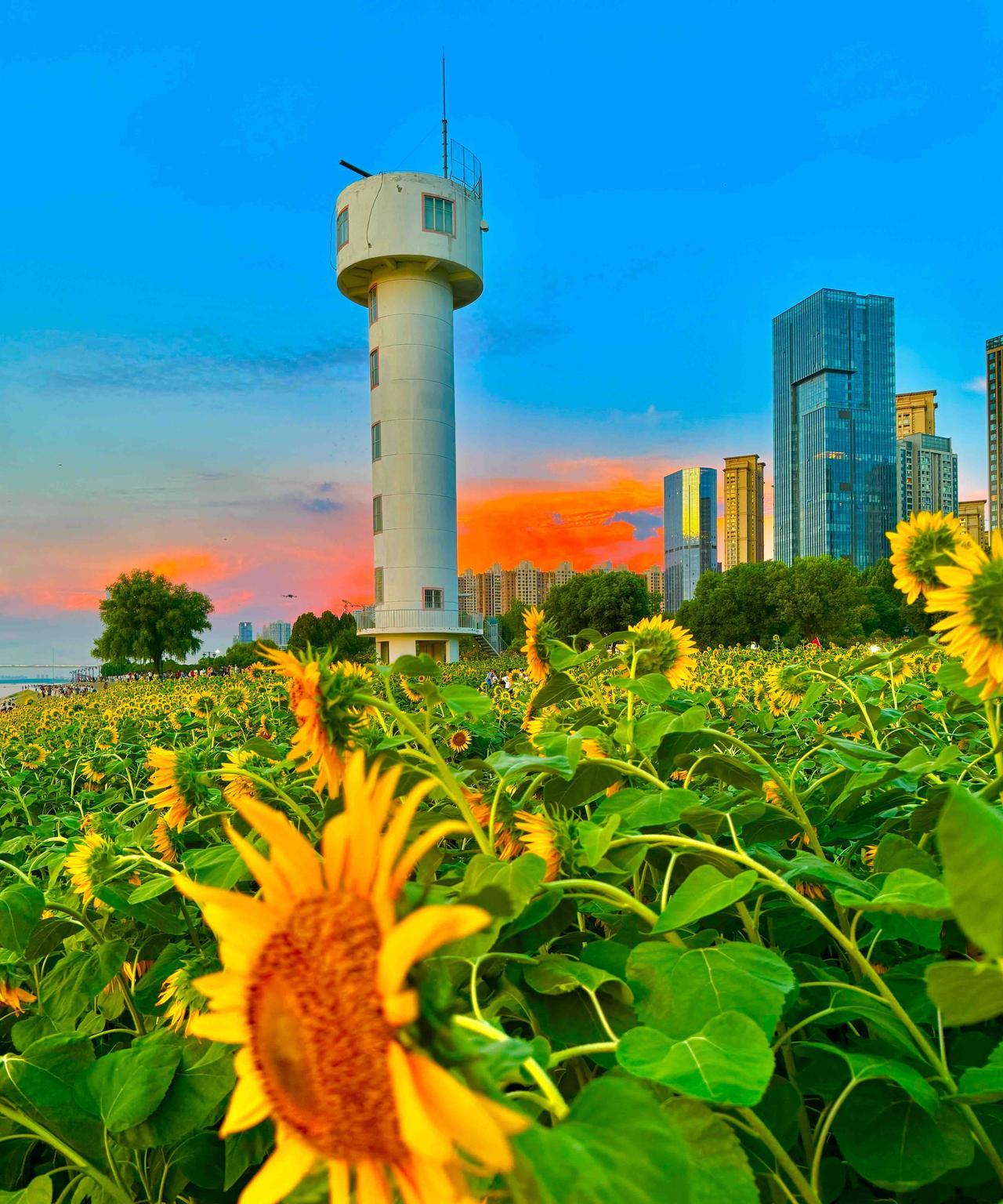 武昌江滩向日葵。不用走出市区,不用专门去乡下,就在长江边上,就能看到一大片的向日葵,一群群爱美的年轻人。假如天公作美,还有绝色的夕阳,温柔的小风,真的美滋滋,看得老夫聊发少年狂了都。要是没有看过的,找个时间出发吧!