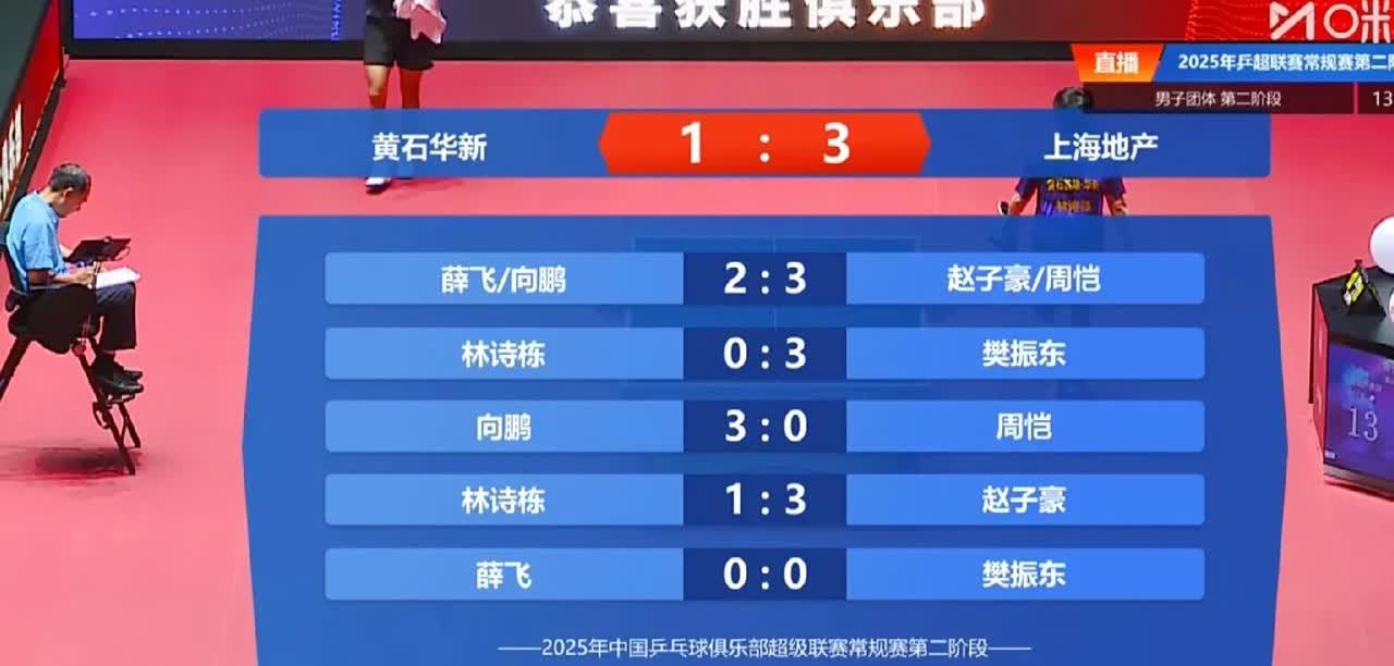 今天4号桌的候解说得碎了!上海地产3-1黄石获胜,向鹏空砍一分,林诗栋失两分!