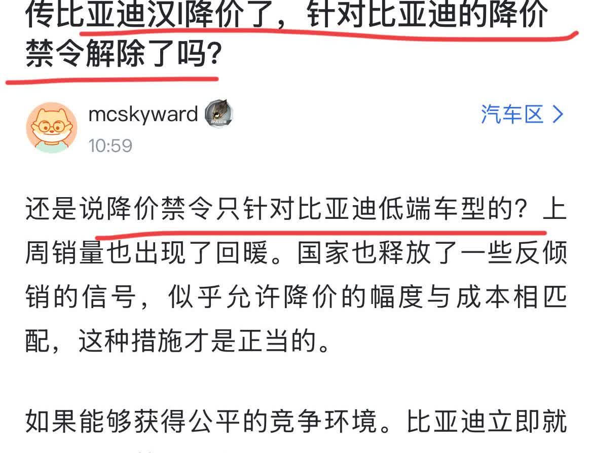 网友:“传比亚迪汉L降价了,针对比亚迪的降价禁令解除了?” 话说,如果这是真的,那我只想说,比亚迪真的是在找死,看来还是没有吸取教训,降价除了“死路”一条外,是没有生路的!要好好想想怎么提升本身的竞争力才是关键! 另外,如果这是谣言的话,建议比亚迪走法律途径维护自身的权益?
