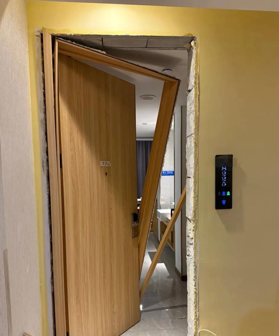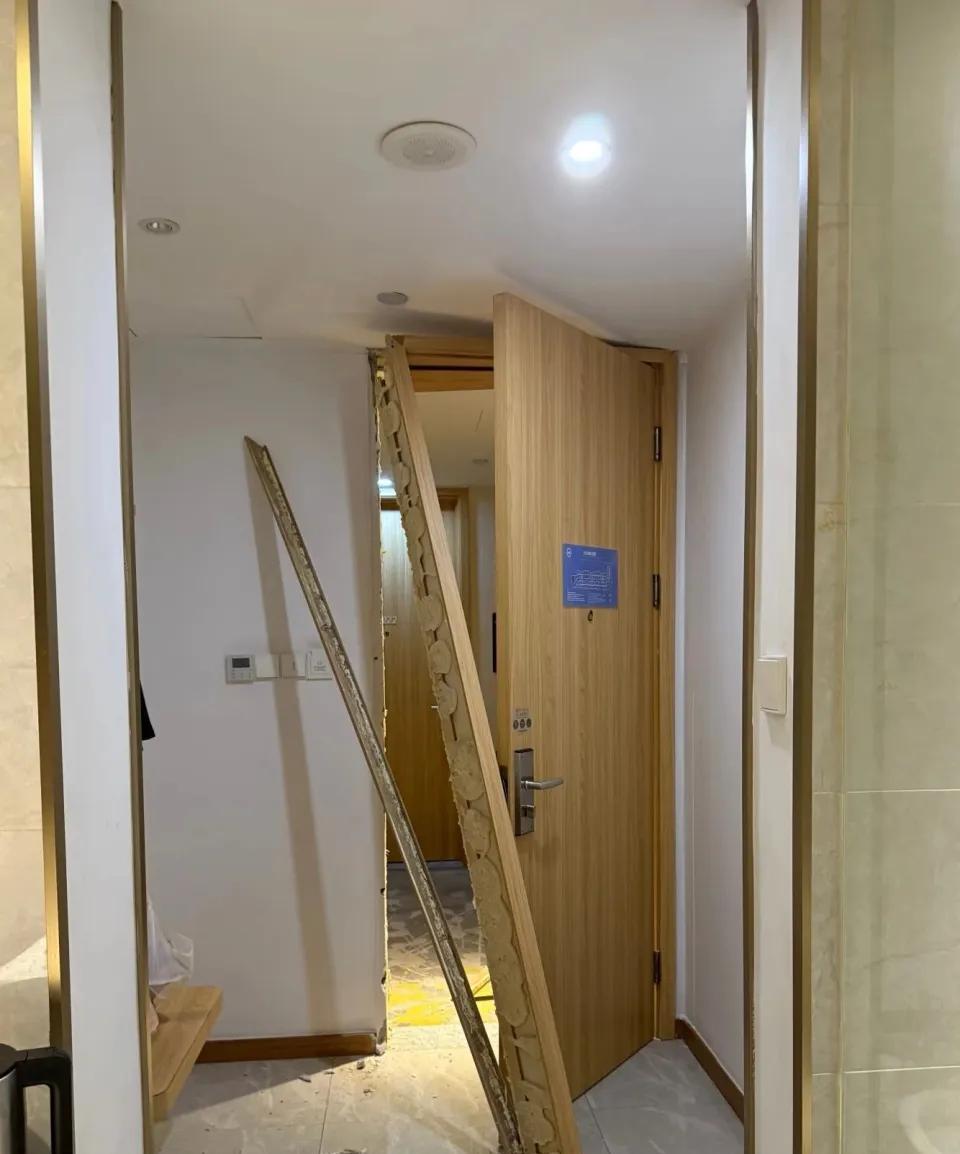 浙江杭州,男子和同事出差入住一家酒店,男子洗完澡正准备擦身体时,一陌生男子踹开房门闯了进来。男子吓个半死,还以为是劫匪,可两人一对视,踹门男撒腿就跑了。男子赶紧报警,原来,踹门男怀疑前女友和他朋友在酒店开房,便怒火中烧跑了捉奸,结果踹错了门。网友不解:前女友跟你有啥关系? 根据潇湘晨报8月3日的报道,网友尤先生在社交平台爆料,自己在杭州出差住酒店时遭遇大无语事件,自己洗完澡光溜溜的,竟遭陌生男子破门而入。 凌晨四点,杭州富阳某酒店的家庭套房里,尤先生刚洗完澡擦着身体,门外突然传来一声巨响。他以为是买夜宵的同事回来了,谁知第二声巨响直接震裂了门框。 一个陌生男子踹烂房门闯入房间,嘶吼着“姓孙的!”四目相对间,闯入者却转身消失在走廊,只留下满地碎木和浑身湿漉、惊魂未定的尤先生。 踹门男子在派出所道出荒唐动机:他怀疑前女友与朋友在此开房,悄悄潜入酒店后竟扒着房门一间间偷听。 尤先生报警后拍下的现场照片触目惊心:门框完全脱落,木条七零八落,整扇门像被卡车撞过般支离破碎。 他的质问直指酒店管理核心漏洞:“谁泄露了房间号?陌生人为何能长驱直入?”而酒店前台面对记者追问,仅以“不清楚”搪塞,安保形同虚设的真相呼之欲出。 这起事件撕开了酒店行业的安全遮羞布。业内数据显示,尽管90%酒店声称配备智能安防,但仅47%实现全区域覆盖,经济型酒店更是低至29%。 涉事酒店暴露三重致命漏洞:电梯无房卡验证、消防通道门禁失效、夜间巡逻缺席,让情绪失控者如入无人之境。 尤先生的维权之路尽显制度性无力。尽管《治安管理处罚法》规定非法侵入可拘10—15天,但现实中80%类似案件以赔偿私了。 更讽刺的是,监控显示踹门全程持续23秒,而从事发到报警的7分钟内,竟无任何工作人员到场——对比新加坡酒店强制“3分钟响应”标准,国内应急机制的滞后令人心惊。 门框碎木散落一地的画面,刺痛了公众对私密空间安全最后的信任防线。民法典第1032条赋予的隐私权,在酒店形同虚设的安防前苍白无力。 尤先生获得6000元赔偿后,房门被修补如初。但千万住客被踹开的心理安全感,远非金钱所能弥合。