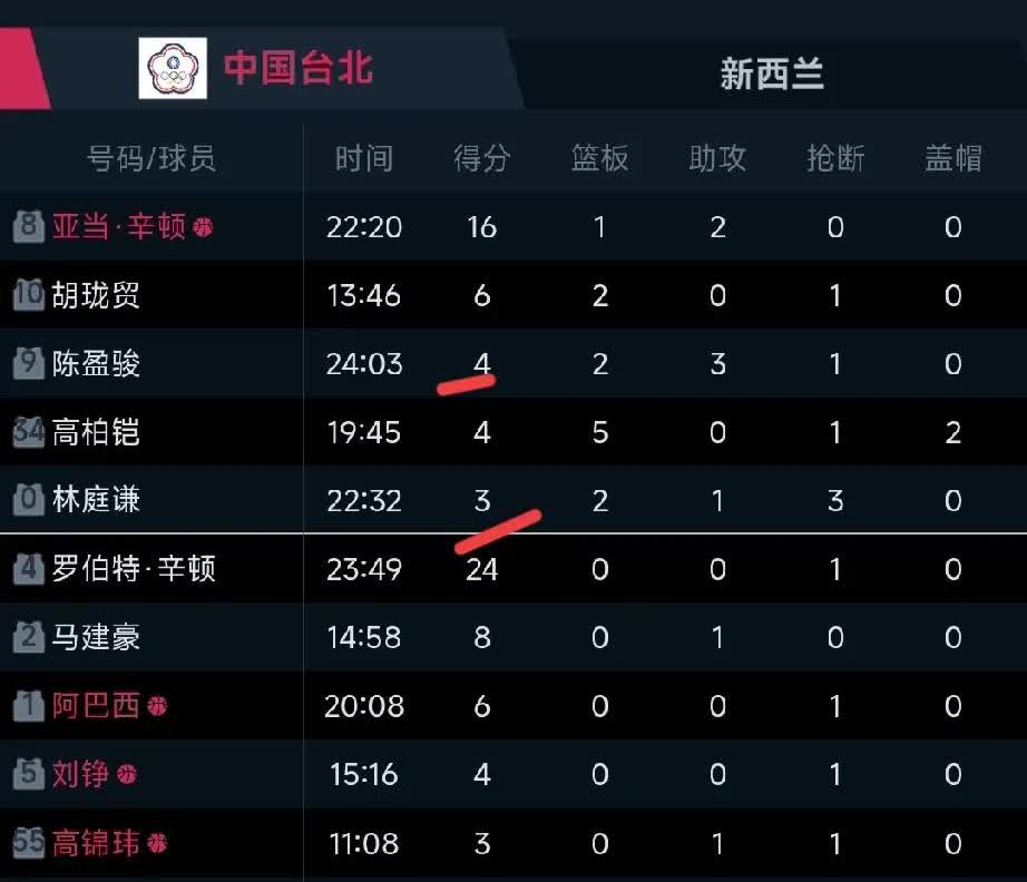 陈盈俊+林庭谦齐哑火!打新西兰拿7分,球队40分惨败于新西兰,咪咕解说提出问题:中国男篮遇到新西兰球传给内线,能不能打进!恕我直言,新西兰男篮没绝对天赋,但是流转快,出手不拖沓,篮板卡位基本功扎实,冲抢篮板球不惜力,对阵中国台湾比赛,篮板61-22,助攻29-9,断层式领先。