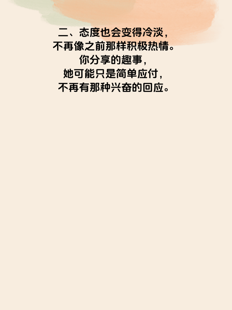 一、当女生失心后,微信对话往往会出现明显变化。起初,她可能回复变得简短,惜字如金。以往能和你聊上好几页的话题,现在可能只回寥寥几个字。 二、态度也会变得冷淡,不再像之前那样积极热情。你分享的趣事,她可能只是简单应付,不再有那种兴奋的回应。 三、聊天频率明显降低。不再主动找你,你发的消息有时也会隔很久才回,甚至可能直接忽略一些话题。 四、对于你的关心,她的回应不再走心。比如你问她今天过得怎样,她可能只是随便说句还行,没有了往日的倾诉欲。 五、话题也变得单一,多是围绕表面的生活琐事,难以深入交流。这时候男生要注意了,别再一味自顾自说,而是要耐心询问她内心的想法,尝试重新打开她的心结,慢慢找回曾经的亲密感,让微信对话重新充满温暖与活力。
