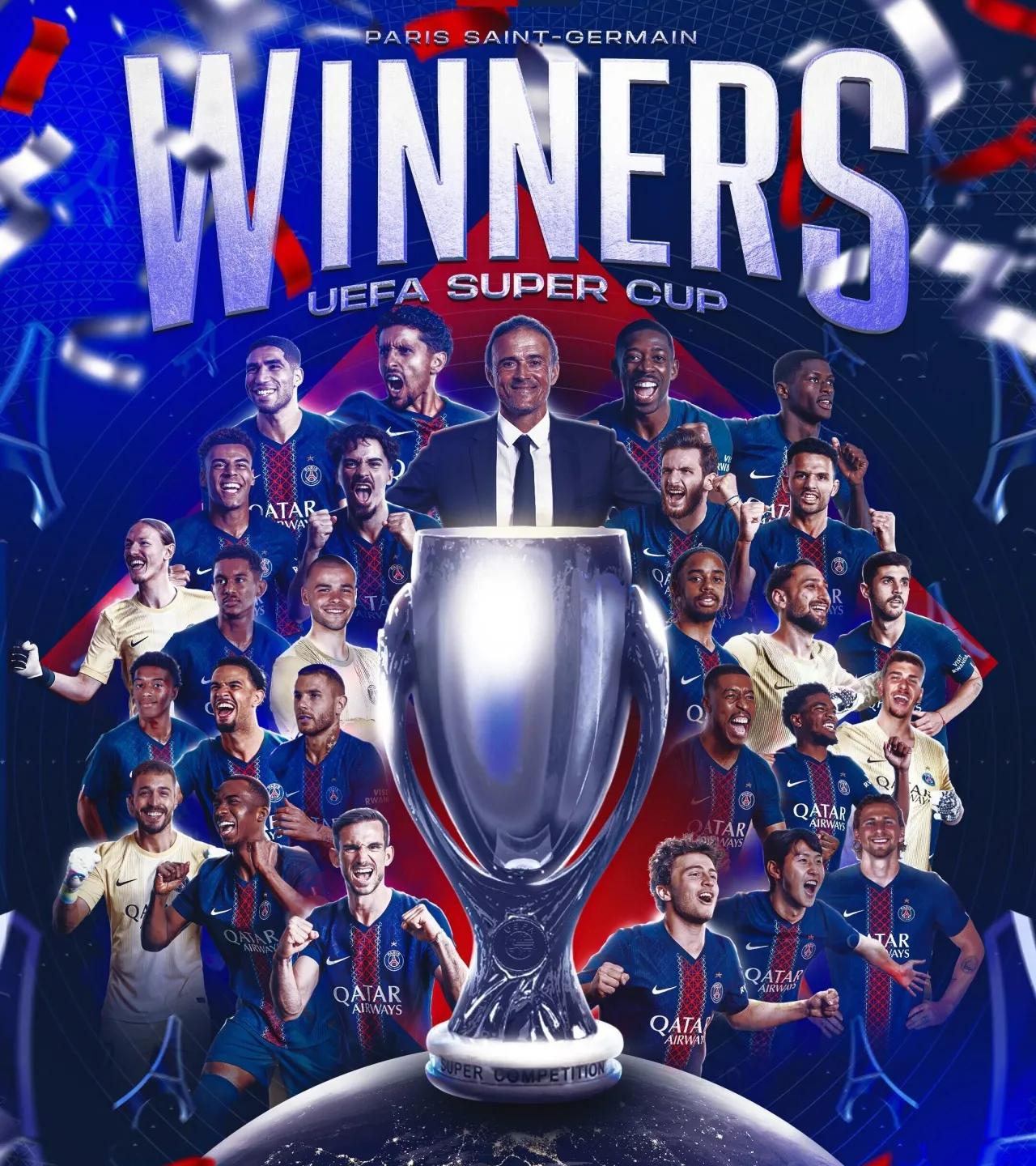 大巴黎夺冠!场面人! 看看第一张现场的夺冠瞬间,大巴黎似乎少了一个人!对,就是多纳鲁马!然而再看看随后俱乐部的官方夺冠海报,对,多纳鲁马又出现了! 至少从表面看,基本的操守大巴黎还是有的。你多纳鲁马走,但这个冠军也有你一份,虽然你也没参与其中,算是践行礼。从多纳鲁马来看,这个欧超杯冠军实在是难以下咽,替代他的门将舍瓦利耶本场发挥只能算中规中矩,但这不妨碍人家一来就夺冠,也不是缺了你多纳鲁马不行。 门将这个位置,似乎想那么有说服力证明他的价值,也没那么容易。多纳鲁马兜兜转转又要去英超了,总感觉他不是瓜帅喜欢的那一款。但,谁又知道呢? #巴黎圣日耳曼# #多纳鲁马#