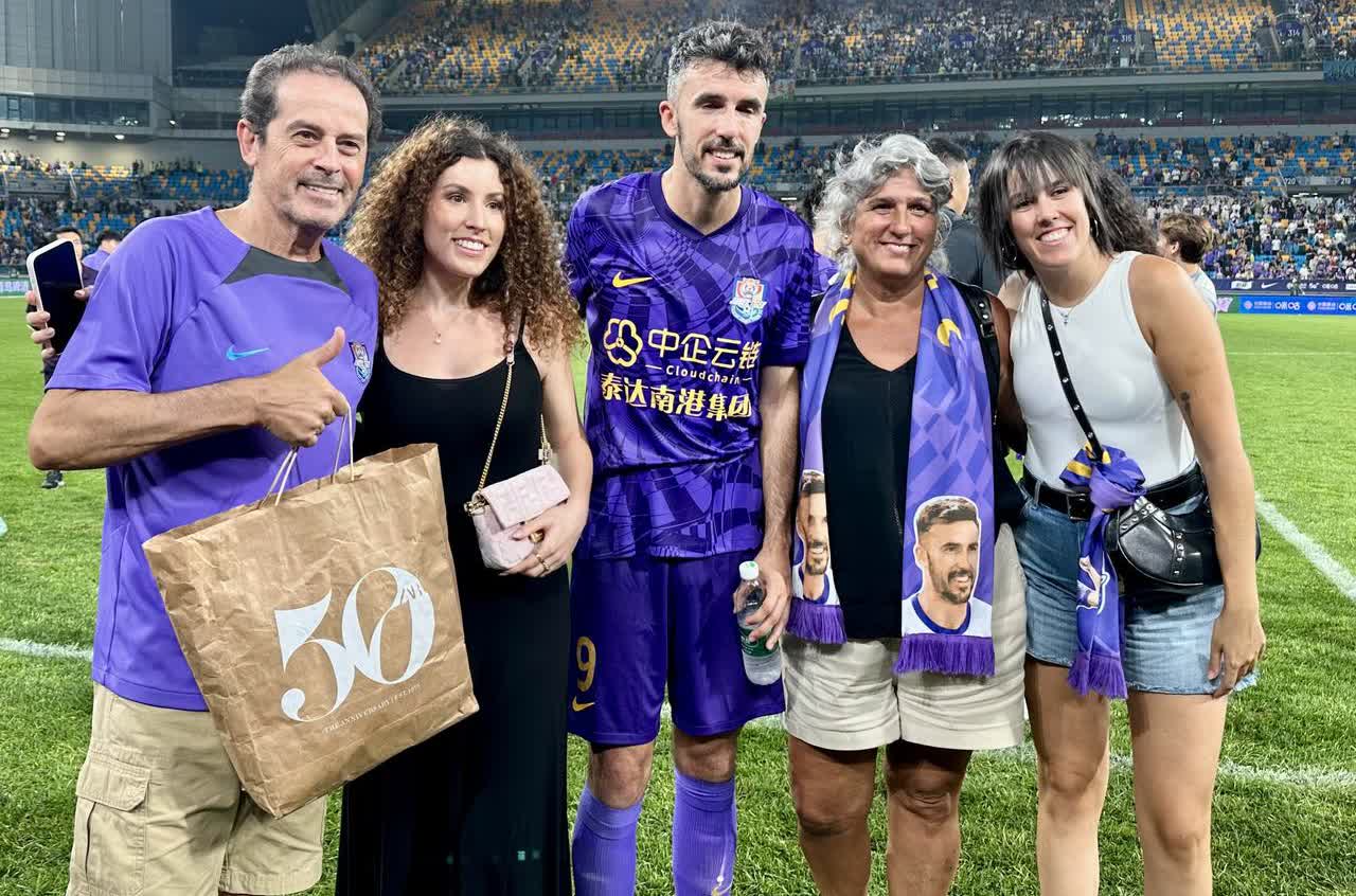 昨天比赛临开始那会儿,遇上了王秋明家两个要出场做球童的儿子。胖嘟嘟的小儿子,当时是那种有点儿严肃的面孔,这么小的娃严肃,而且持续严肃,特别有意思。他一个劲儿往赛场里指,显然那已经是他熟悉的地方,出场,对他来说也像有仪式感。赛后看王秋明的大儿子跟着队伍谢场,自在翻跟头,就是属于大孩子的松弛了,而这种松弛,首先是他爸爸进球给的,是津门虎队赢球给的。 津门虎队每个主场比赛,都会有很多教练、球员们的家人来球场,昨天于指导发的抖,能看到挨斯特乌的闺女、儿子,赛后专门去给他送老家的火腿,小姑娘临告别抱了于指导一下,透露出一份常见常聊的交情。 方镜淇回来了,他的两个漂亮闺女,也抓住暑假的尾巴来天津了,昨天进场和守门员组一起合影。完场后,杨帆把刚一岁出头儿的儿子抱进了场地,瞬间教练、队友们谁看见都想摸摸…… 我们每个人都当过小孩子,想想,小时候去过父母工作的单位吗?是不是去的次数多了、在单位里见过的人多了,回头哪怕只路过,甚至只听说,心里都会泛起感情的泡泡。
