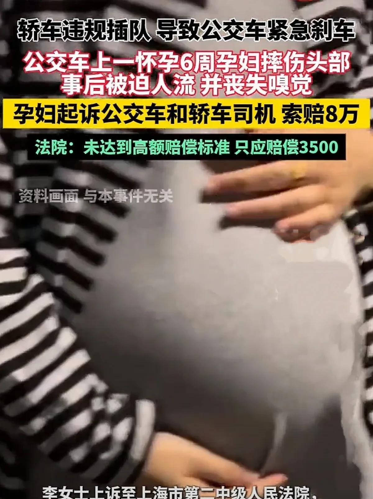 上海,42岁女子下班乘坐公交车时,因一小轿车违规插队致公交急刹,导致其摔伤头部。交警认定小轿车全责。事故后,女子竟查出怀孕6周。因做了CT检查及服药,怕影响胎儿发育,被迫流掉孩子。失去孩子的伤痛和冲撞伤导致嗅觉丧失的焦虑。女子愤然将公交公司和小轿车司机告上法庭,索赔医疗费、交通费等及精神损害8万元。而法院判决让她大失所望! 据红星新闻8月17日报道,42岁的李女士搭乘公交车下班,一轿车违规插队,公交车急刹车,竟让她失去了千求万拜得来的孩子,让她处于极度悲痛中!而她的诉讼结果更是悲愤欲绝! 李女士下班后像往常一样登上了那辆熟悉的公交车,满心期待着回到温馨的家中,卸下一天的疲惫。 公交车在拥堵的车流中稳稳前行,李女士微微靠在座椅上,眼神有些迷离,思绪渐渐飘远。然而,这片刻的宁静却被一声尖锐的刹车声彻底打破。 原来,一辆小轿车违规插队,直直地冲进了公交车前方的道路。 公交车司机眼疾手快,猛踩刹车,车身剧烈地晃动起来。车厢内顿时一片混乱,乘客们的惊呼声、物品掉落的声音交织在一起。 李女士只觉得一阵天旋地转,整个人不受控制地向前射出,头部重重地撞在了前方的栏杆上。 李女士扑通一声摔倒在地,只觉得头部一阵剧痛,她用手捂住脑袋,眼前直冒金星。 乘客纷纷围了过来,焦急地询问她的情况,有人赶紧拨打了急救电话。 李女士知道,她这下摔的可不轻!心里充满了恐惧和不安,她祈祷自己可别出啥事! 很快,交警赶到了现场。经过一番仔细的调查和询问,交警认定小轿车司机张女士负此次事故的全部责任。 李女士被送进医院,为她包扎了伤口,做了脑部 CT检查,并住院治疗。 李女士总觉得身体有些不对劲,时常感到恶心呕吐,还伴有头晕目眩的症状。 医生根据她的症状再次检查,检查结果让她悲喜交加,她竟然已怀孕6周了! 这可是与丈夫盼了,努力了多年的才求来的孩子啊! 可由于在事故中头部受伤,医生建议她做CT检查,并且给她开了一些药物。而这些检查和药物,对腹中的胎儿健康有着极大的风险。 李女士躺在病床上,眼泪止不住地流。她多么渴望能拥有这个孩子啊,可现实却如此残酷。 她想起自己和丈夫为了要孩子所做的种种努力,想起那些期待和憧憬,如今却都要化为泡影。 经过一番痛苦的挣扎,李女士和家人最终决定做人工流 产,打掉孩子。 除了失去孩子的痛苦,李女士还发现自己的嗅觉出现了问题。原本熟悉的各种气味,现在她几乎都闻不到了。这对她来说,又是一个沉重的打击。 李女士心里充满了绝望和无助,她认为自己遭受的不幸和痛苦,均为公交车与小轿车司机张女士造成的,必须为她造成的损失负责。 于是,她一纸诉状把公交车与张女士告上法庭,索赔医疗费5126.07元、交通费562元、营养费3000元、鉴定费900元,以及精神损害赔偿金8万元。 而两名被告不认可人工流产产生的医疗费以及精神损害赔偿金。 《道路交通安全法实施条例》第53条规定:机动车在遇有前方机动车停车排队等候或者缓慢行驶时,应当依次排队,不得从前方车辆两侧穿插或者超越行驶,不得在人行横道、网状线区域内停车等候。 张女士的小轿车在车流高峰期,不按交规正常行驶,进行违规插队,导致公交急刹,致使李女士摔伤头部,其过错行为与李女士受伤结果之间存在直接因果关系。 张女士因违反交通规则导致事故发生并造成损害的,应当承担全部责任。 《民法典》第823规定:承运人应当对运输过程中旅客的伤亡承担赔偿责任;但是,伤亡是旅客自身健康原因造成的或者承运人证明伤亡是旅客故意、重大过失造成的除外。 本次事故中,公交急刹是因为张女士的违规插队行为导致,并非公交公司自身的原因。 公交司机正常驾驶、车辆性能正常等,且没证据表明李女士受伤是其自身健康原因或者故意、重大过失造成的。 因此,公交公司在此次事故中不存在过错,故无需对李女士的受伤承担赔偿责任。 《民法典》第1183条规定:侵害自然人人身权益造成严重精神损害的,被侵权人有权请求精神损害赔偿。因故意或者重大过失侵害自然人具有人身意义的特定物造成严重精神损害的,被侵权人有权请求精神损害赔偿。 张女士小轿车违规插队,导致公交车急刹车,致使李女士受伤,经交警认定张女士全责,其行为属于侵权行为。 李女士做CT及药物被迫人工流产且嗅觉丧失,身体和精神均遭受痛苦,有权请求精神损害赔偿。 一审法院综合考虑了李女士的伤情,认为流产和嗅觉障碍未达高额赔偿标准。最终酌定赔偿金额3500元。 李女士对判决不服,提起上诉。 二审法院认定,精神损害抚慰金的判定不以构成伤残等级为前提。 但综合考虑过错程度、损害后果及当地生活水平,认为一审酌定3500元并无明显不当。最终维持原判。 您对李女士判得3500元赔偿,怎么看? 关注@小栗子看法 一起交流讨论,学习法律知识!