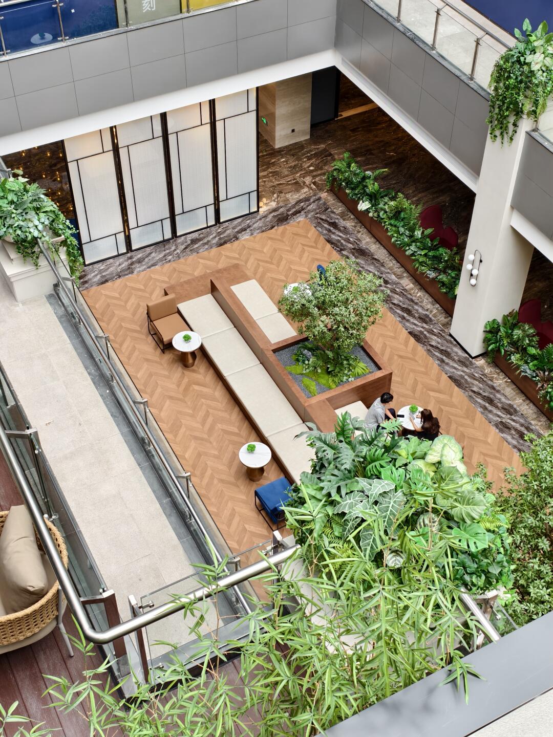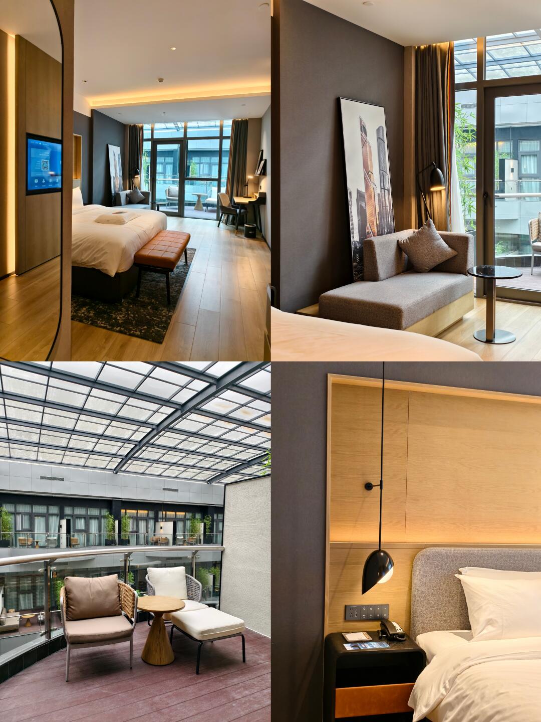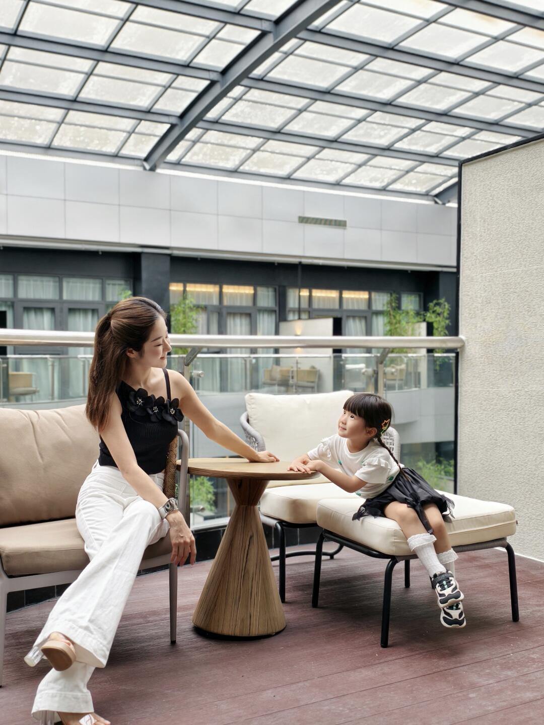 突然明白这才是酒店让人有回家感觉的贴心!这些细碎的瞬间,像春天的风一样,不刻意却让人觉得舒服。在房间拍了几张照片,暖黄的灯光下,都觉得好温馨呢!一楼公区也有城市绿洲的感觉,菲宝在这里跑跳得可开心了!