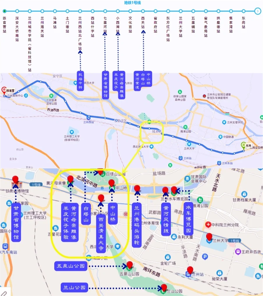兰州,目前只开通了🚇地铁1号线(见图2),但庆幸的是,它基本可以达到所有必去景点