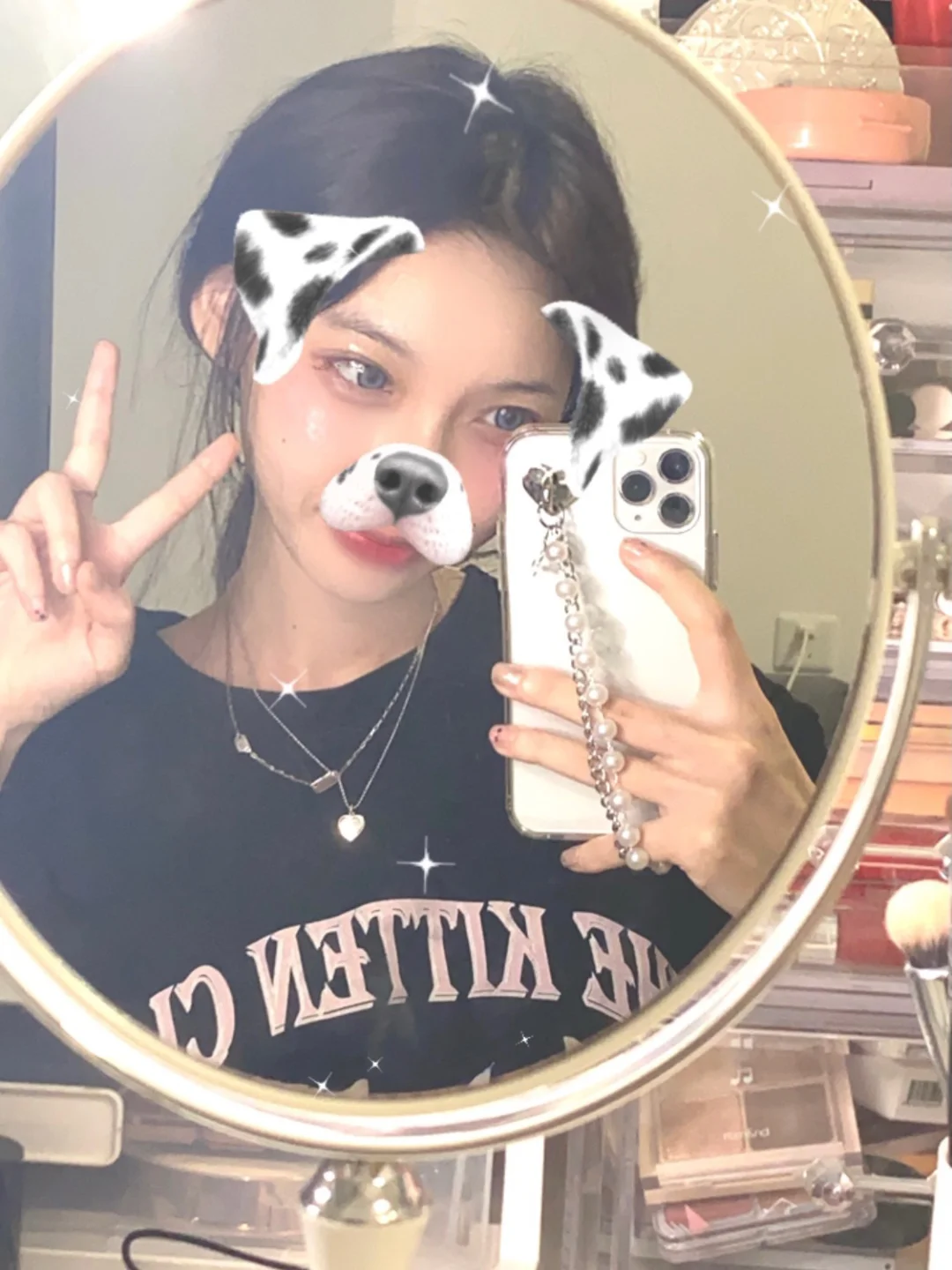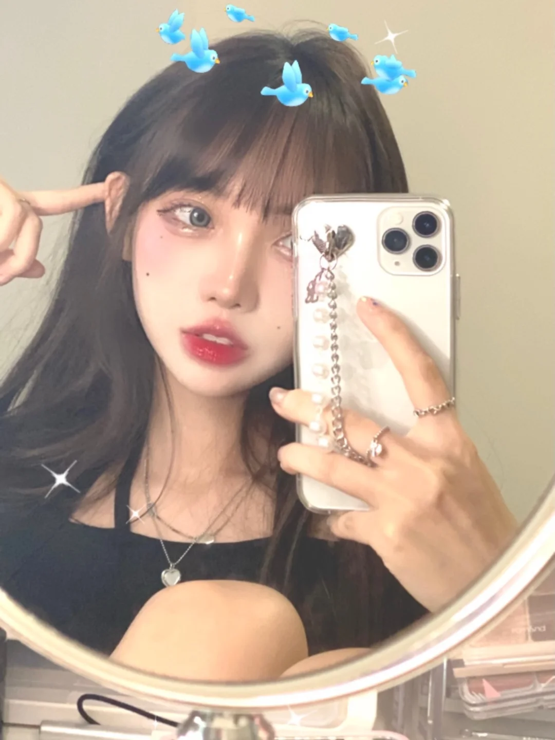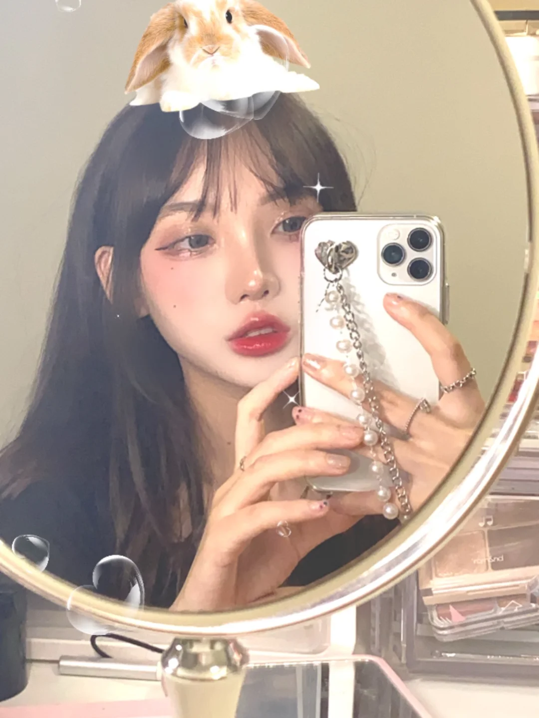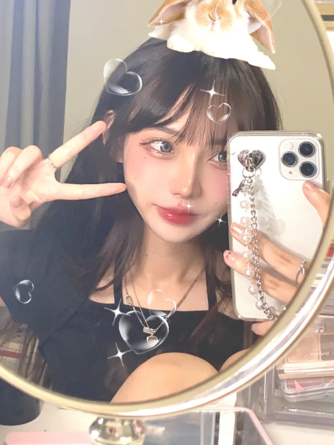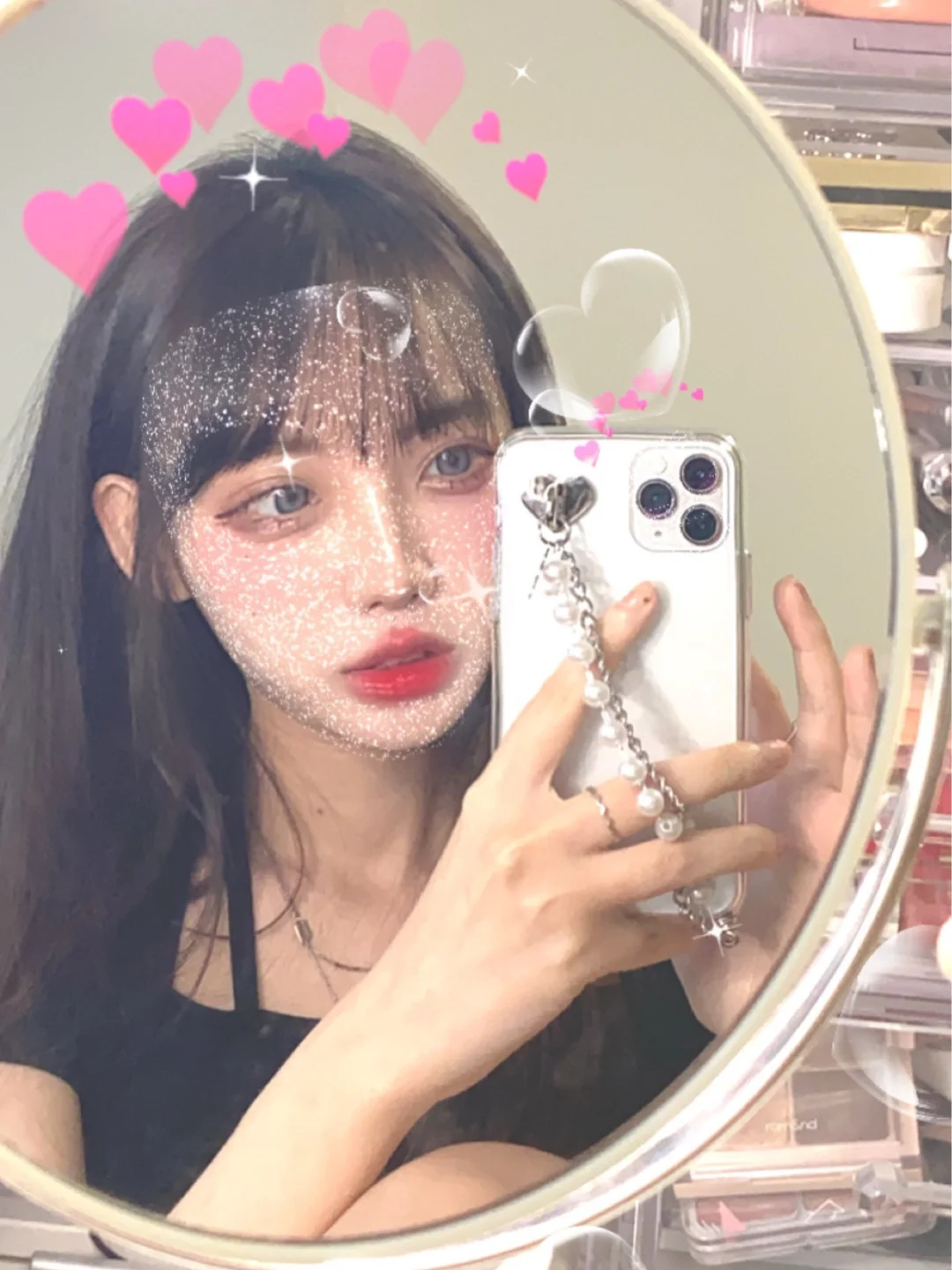 💞准备一些拍照道具,新买了一个椭圆化妆镜,好看的手机壳壳,戴上小配饰