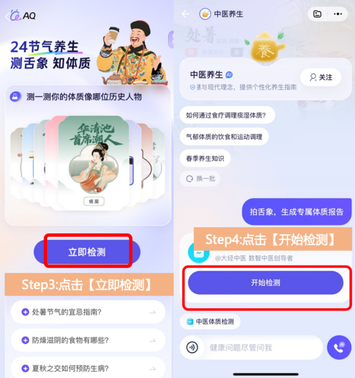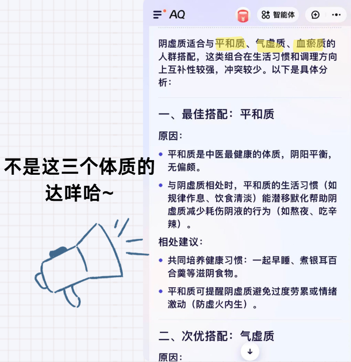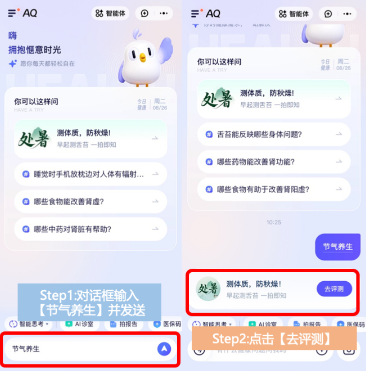 不过现在谁还不知道怎么看舌苔测体质?!别说我不教你咯👉去应用商店/app store搜【AQ】下载→注册登陆AQ→对话框输入【节气养生】立即检测就行啦!测试完后还能生成专属体质卡!