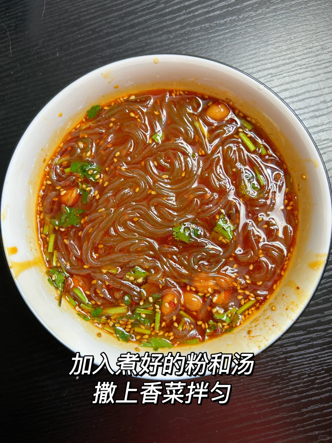 自己在家做的酸辣粉 真的太好吃了啊!! 简简单单5分钟搞定!! 酸辣粉姐妹们可以按照自己的需求多多加醋!! 汤都很好喝!! 做法看图片哦