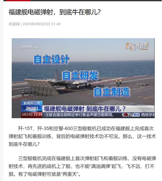 全世界公认的军事实力第一是美国,俄罗斯第二,中国第三,不过经过93阅兵和福建舰弹射之后,我们可以简单对比一下中国和美国。   美国福特号早早就喊着要装电磁弹射,号称要甩开对手一代,可真下水了才发现,这技术就是块烫手山芋。这艘2017年就服役的航母,硬生生熬了6年才敢搞首次全球部署,光造价就砸了130亿美元,堪称美军最“烧钱”的军舰。   问题却没断过。2020年6月,4台弹射器直接同时罢工,工程师们修了5天5夜才搞定,真放战时这就是灭顶之灾。紧接着2025年测试时,弹射系统又出故障,连故障根源都没找到,只能临时想个替代办法应付。   更尴尬的是弹射功率跟不上。福特号连31吨的F-35C隐身舰载机都弹不动,只能迁就29吨的F/A-18E/F“超级大黄蜂”,反倒不如老款“尼米兹”级的蒸汽弹射器管用。电磁阻拦装置也老掉链子,幸亏留了套备用的摩擦力减速装置,不然飞行员都得弃机跳伞。   这边福特号还在跟故障死磕,中国福建舰已经悄悄交出了漂亮答卷。这艘满载排水量8万余吨的常规动力航母,直接跳过蒸汽弹射,一步到位装上了电磁弹射,成了全球第二家掌握这技术的玩家。   关键是福建舰的技术路子跟福特号完全不一样,可靠性还甩了对方一大截。它能精准控制推力,从百公斤的无人机到30多吨的重载战机都能轻松弹射,能量效率更是飙到60%,是蒸汽弹射的10倍之多。   歼-15T、歼-35和空警-600三型舰载机已经在福建舰完成了弹射起降。这可不是简单的起飞,有了电磁弹射,战机就能满油满弹出击,飞得更远、打得更狠。以前没法上舰的空警-600也能随队出征,等于给航母战斗群装了“空中大脑”,来犯之敌根本藏不住。   有人拿弹射器数量说事儿,说福特号4条弹射器比福建舰多1条。但实战看的是出动效率,福特号故障频发,再好的数量也白搭。福建舰虽然只有3条弹射器,却能稳定输出,单位时间内起飞的战机只会更多。   升降机数量也是同理。福特号3台升降机看似占优,可福建舰2台升降机的布局更合理,配合平直通长飞行甲板,调度效率一点不落下风。要知道,平直甲板本身就比滑跃甲板的优势全方位,这可是大型航母的标志性设计。   福特号的雷达、电子战系统至今还带着“缺陷和限制”,五角大楼的测试报告早把问题摆上台面。福建舰却凭着成熟的技术整合,直接配齐了“航母五件套”,隐身突防和饱和打击能力一下拉满,妥妥的世界头号常规动力航母。   很多人纠结福建舰不是核动力,可换个角度想,常规动力让它避开了核反应堆的技术风险,还能更快形成战斗力。福特号的核动力是先进,但架不住关键系统掉链子,服役多年至今没形成完整作战能力。   CNN曾提过福建舰的差距,但这些差距更多是客观条件限制,而非技术代差。中国用更稳妥的路径实现了弯道超车,这才是最妙的地方。福特号踩过的坑,福建舰全绕开了,这就是后发优势的真正威力。   美军总想靠技术代差压人,却忘了新技术得经得住实战检验。福特号的电磁弹射就像个没调试好的精密仪器,看着高大上,用起来全是麻烦。福建舰则把技术打磨得足够可靠,上来就能形成战斗力。   现在再看中美航母的比拼,已经不是单纯比吨位、比装备数量。福特号代表的是“先声夺人却后劲不足”,福建舰则是“厚积薄发且一步到位”。前者还在为故障头疼,后者已经开始形成远海防卫能力。   这背后是中国军工的扎实积淀。从93阅兵展示的装备体系,到福建舰的电磁弹射突破,中国 military 工业一直在稳扎稳打。不追求噱头,只讲究实用,这种风格恰恰戳中了美军的痛点。   福特号的困境告诉我们,技术领先不等于实战领先。福建舰的成功则证明,后发者只要找对路子,完全能实现赶超。这俩“福”字辈的航母,就像两条不同的发展路径,答案已经慢慢清晰。   未来的海洋竞争,拼的不是谁先喊出概念,而是谁能把技术落到实处。福特号还在补旧账,福建舰已经在往前跑,这种差距还会继续拉大。   官方信源:央视军事频道《福建舰电磁弹射,到底牛在哪儿?