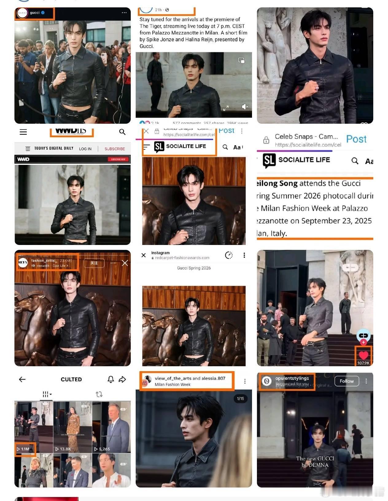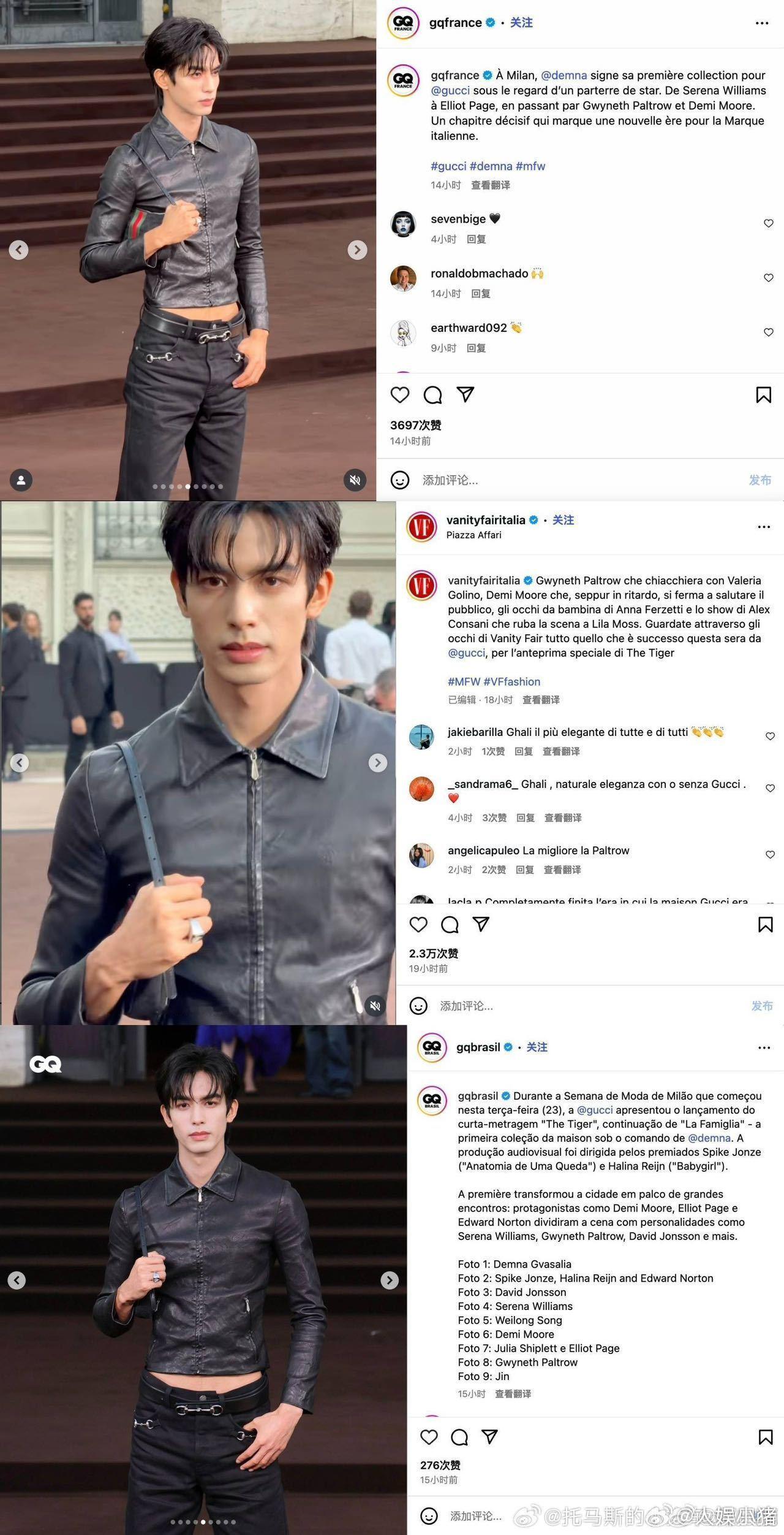 外媒报道宋威龙 刷屏国际的中国力量!GUCCI独发视频,三大顶流外媒锁定唯一亚洲面孔,用Demna造型书写时尚传奇 。