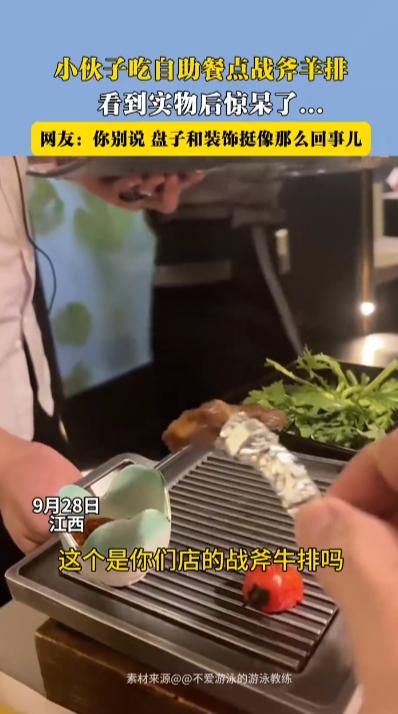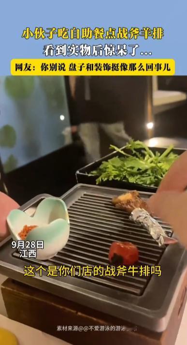“离了个大谱!”9月28日,江西,一男子吃自助餐点了一份战斧羊排,端上来后男子傻