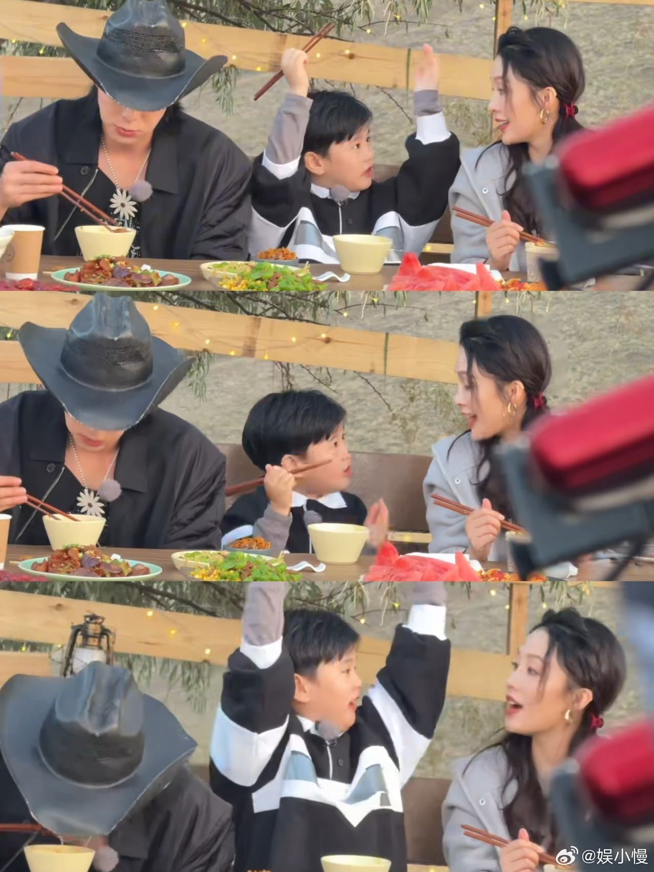 王鹤棣李沁马立奥吉祥三宝谁被《咸鱼飞升》饭堂路透戳中了!李沁和马立奥贴贴说悄悄话超亲昵,小松子比划的样子超可爱,而王鹤棣只顾埋头干饭,香到让人看饿,这“吉祥三宝”的同框画面也太治愈了吧~ ​​​