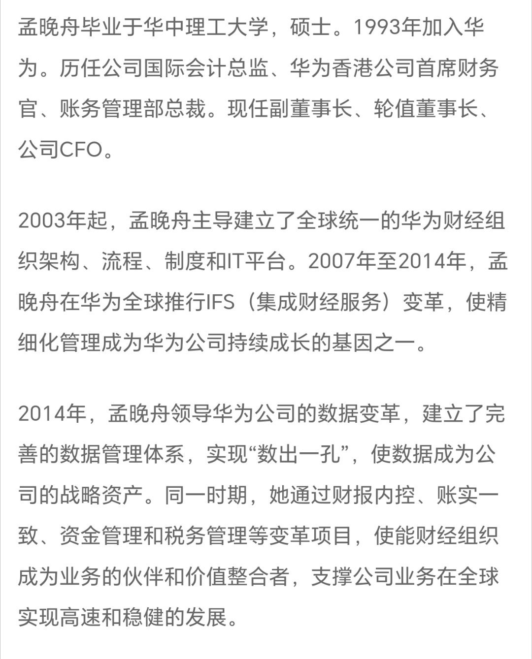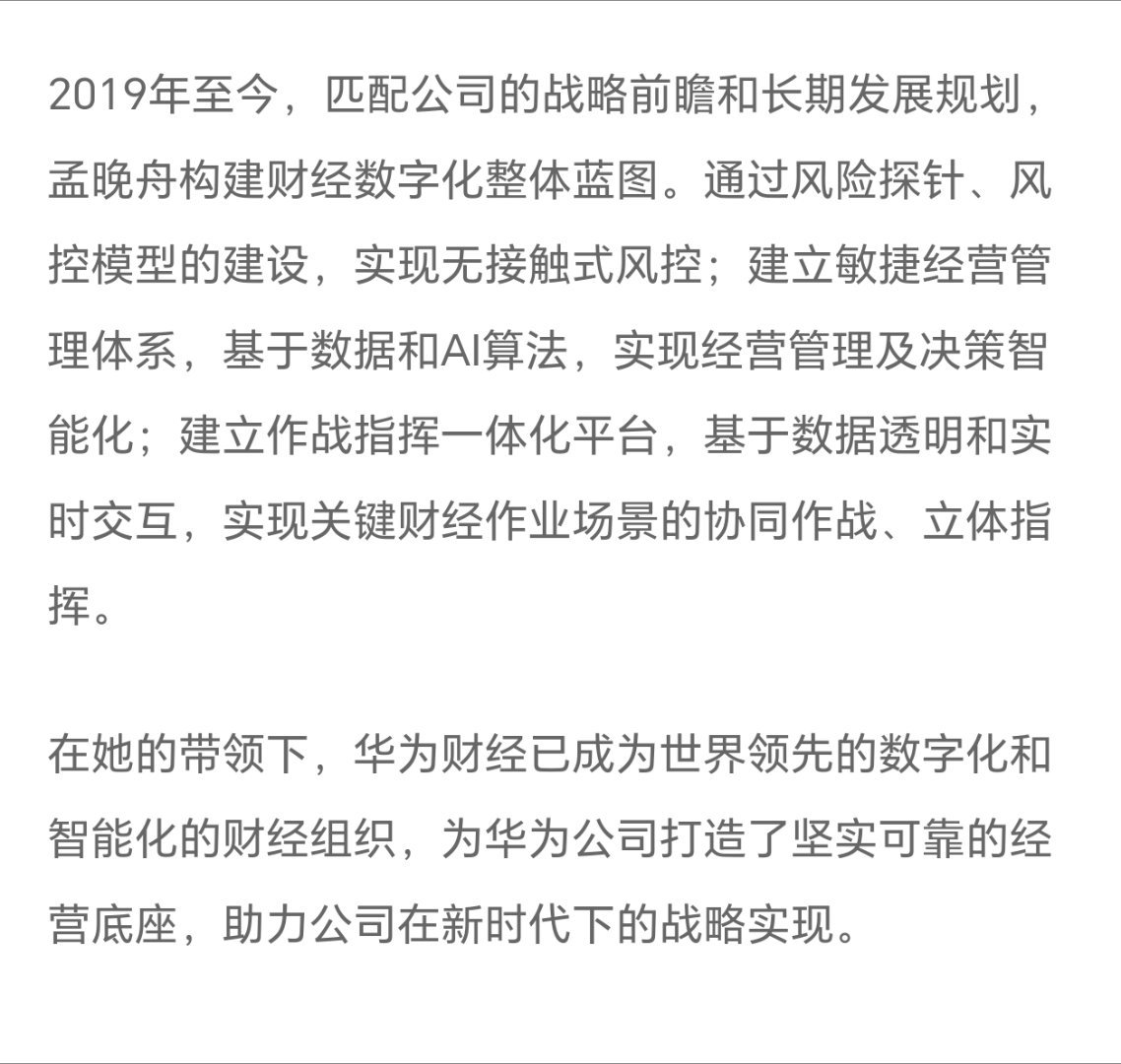 孟晚舟的能力也是非常强的,简介里面也写到:“在她的带领下,华为财经已成为世界领先的数字化和智能化的财经组织,为华为公司打造了坚实可靠的经营底座,助力公司在新时代下的战略实现。”[good][good][good]