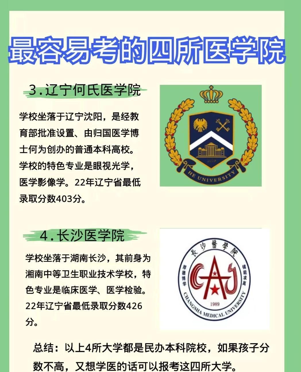 四所易考的医学院:分数不高想学医的务实选择 学医是很多人的梦想,但顶尖医学院的高分数让不少人望而却步。其实有几所民办医学院录取分数相对温和,给了分数不高却想学医的学生机会。今天就来聊聊这四所医学院。 山东协和学院位于济南,前身为山东中医学院中专部,是山东财政支持的本科“特色名校”建设单位。护理学、临床医学、康复治疗学是特色专业,22年辽宁省录取最低分425分。学校在医学实践教学上很下功夫,实验室和实训基地能满足学生的实操需求,毕业生在基层医疗单位和康复机构就业情况不错,对于想进入医疗行业的学生来说,是个不错的起点。 齐鲁医药学院在淄博,前身为山东万杰医学院,属于“国企公有高校”。临床医学和药学是特色专业,22年辽宁省录取最低分444分。学校的药学专业在省内民办院校里口碑不错,和不少药企有合作,学生实习和就业有优势,临床医学专业的学生也能在附属医院得到充分的临床锻炼。 辽宁何氏医学院在沈阳,由归国医学博士何为创办。眼视光学、医学影像学是特色专业,22年辽宁省最低录取分数403分。眼视光学专业是它的王牌,在东北地区的眼视光领域很有影响力,毕业生在眼科医院、视光中心就业很有竞争力,医学影像学专业也为各级医院的影像科输送了不少人才。 长沙医学院在湖南长沙,前身为湘南中等卫生职业技术学校。临床医学、医学检验是特色专业,22年辽宁省最低录取分数426分。临床医学专业注重临床技能培养,学生能在附属医院进行系统的临床实习;医学检验专业的实验室设备先进,学生的检验技能很扎实,在各级医院的检验科就业形势不错。 这四所医学院都是民办本科,录取分数相对较低,为分数不够高但想学医的学生提供了升学机会。它们的专业设置贴近基层医疗需求,实践教学资源也在不断提升,毕业生在医疗行业的基层岗位上能发挥自己的专业价值。 你对民办医学院有哪些了解?你觉得民办医学院的毕业生在医疗行业的发展前景如何呢?医学本科院校 中国医学院排名 山东医学专业 山东齐鲁医学院 山东医校 医学院排名 山东医科大学