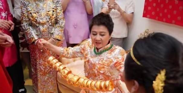 赌王四太嫁女儿,真是把家底都快搬出来了。 何超盈身上挂的金镯子,一层一层快堆到胳