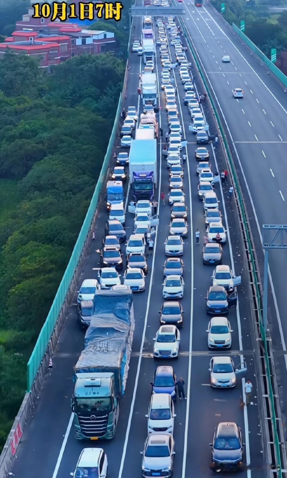 早上7点大堵车:喜酒要凉,迟到要搞卫生 10月1日早7点,高速段堵成了“停车