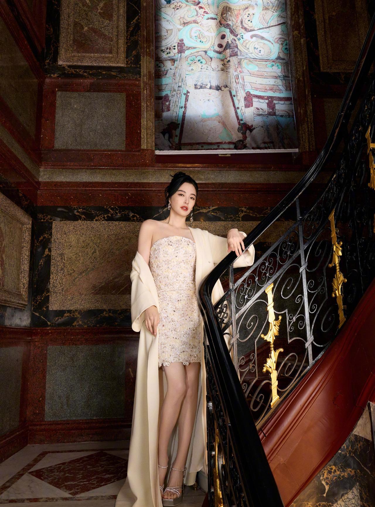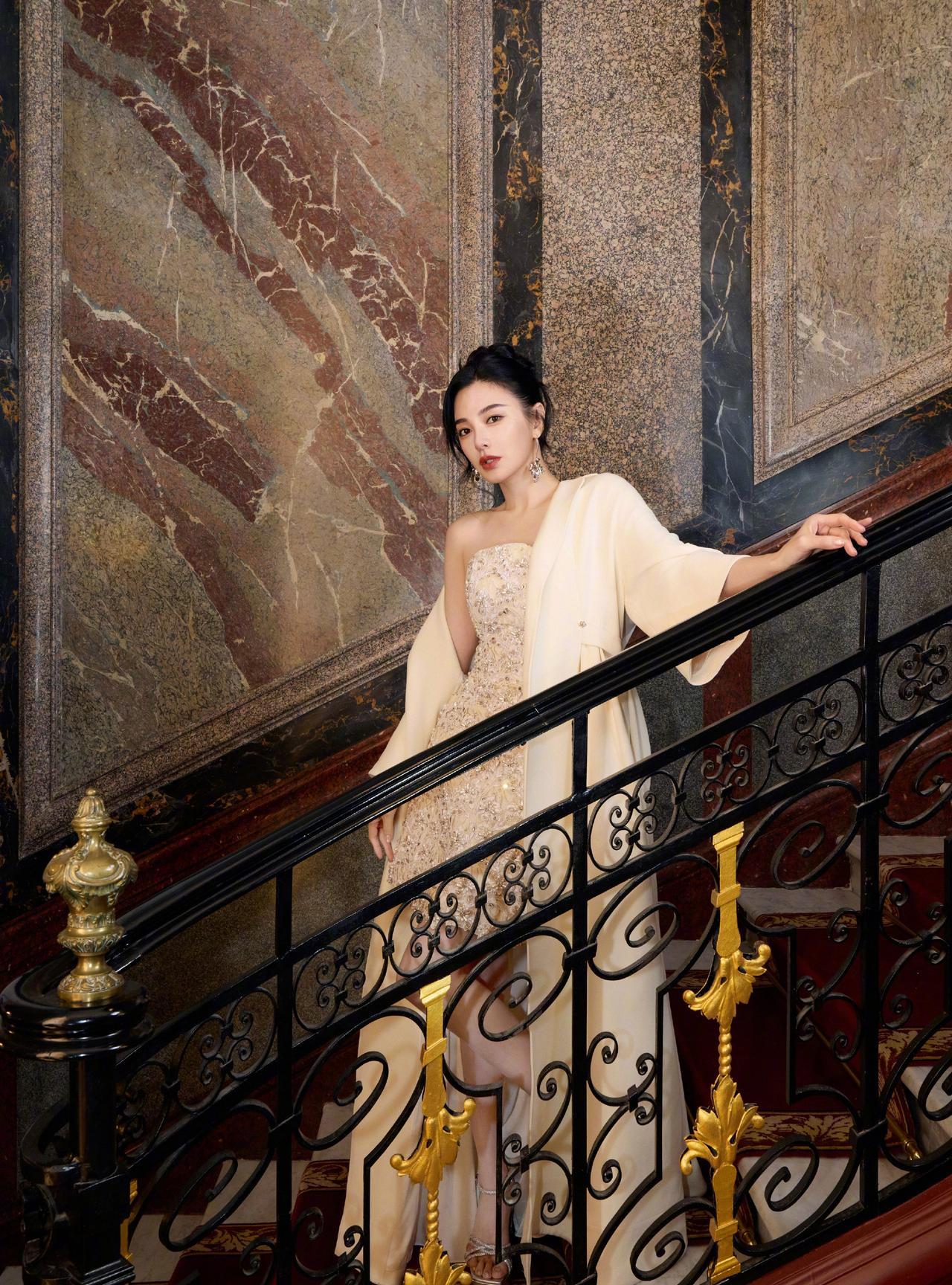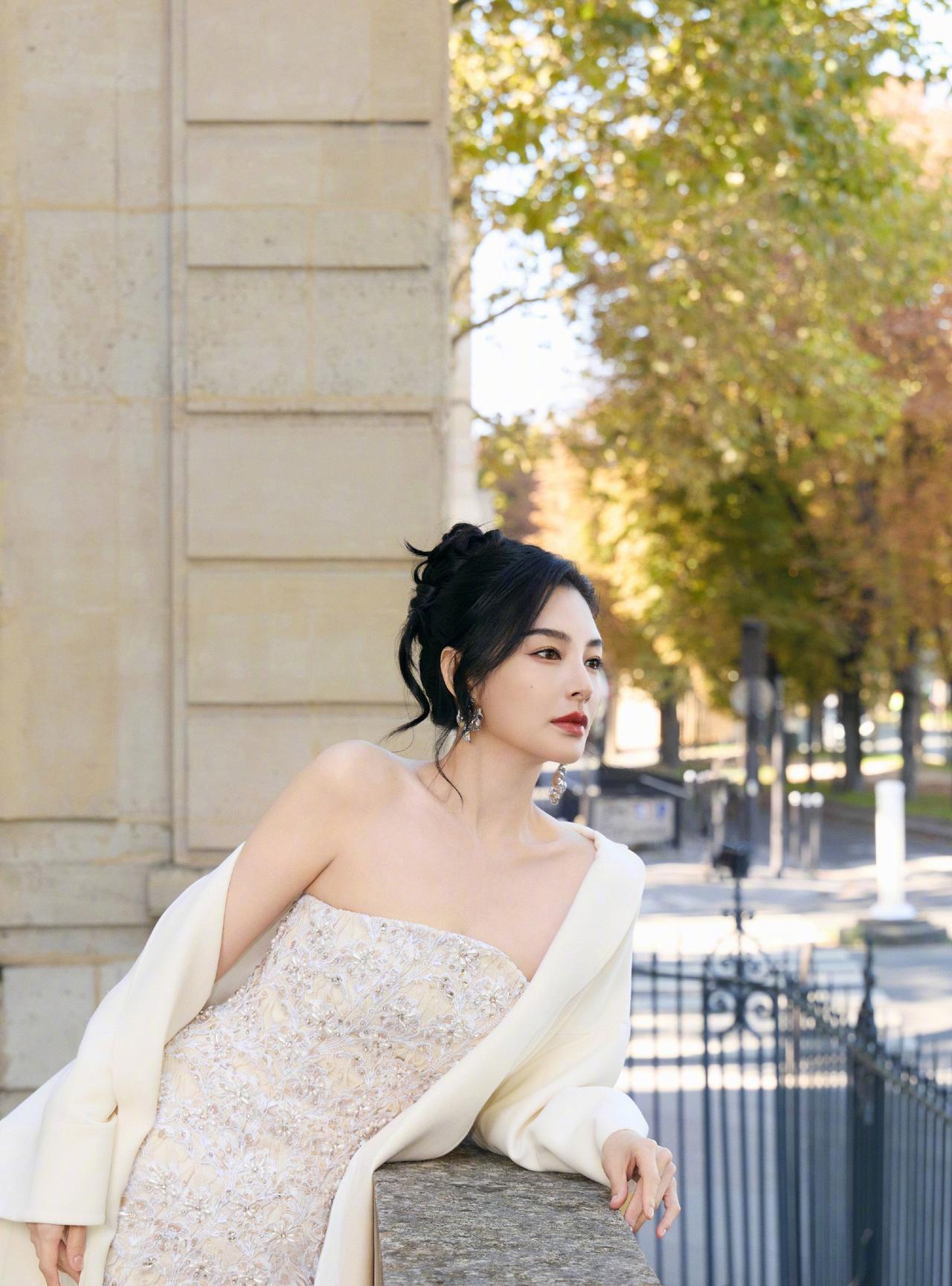 张雨绮巴黎高定大片:白色礼裙演绎法式优雅,在复古宅邸间绽放奢华气场