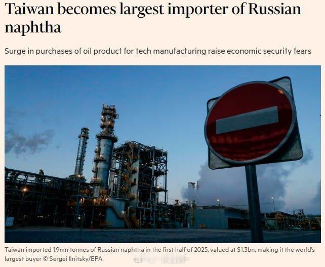 根据赫尔辛基的能源与清洁空气研究中心报告,自乌克兰战争全面爆发以来,台湾地区一直从俄罗斯大量采购石脑油。石脑油是一种用于制造化工品、广泛应用于科技和半导体产业的碳氢液体。