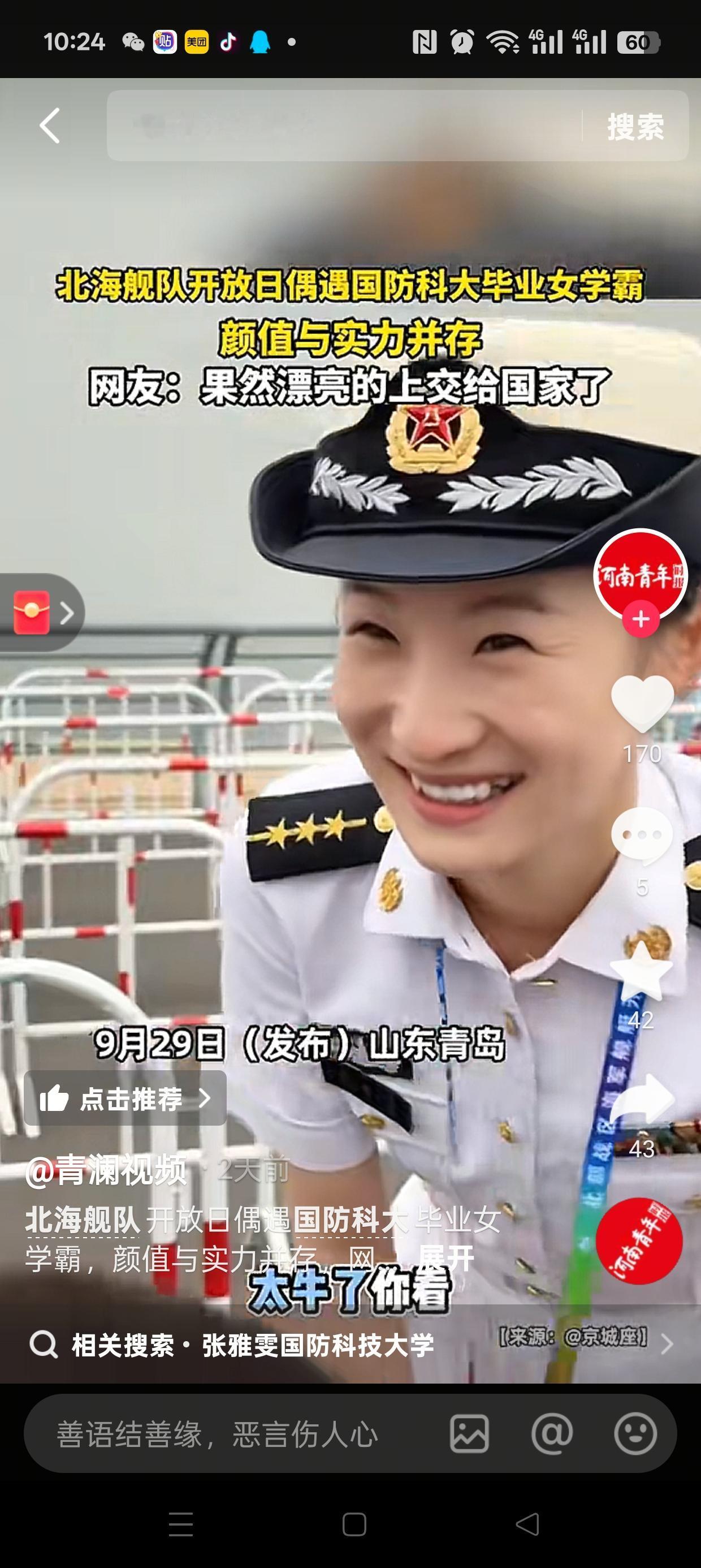 不只帅的上交给国家,原来漂亮的也交给国家了! 图中这位笑容明媚的海军女军官,是国防科大毕业的高材生。白色军装笔挺利落,肩章上的星芒熠熠生辉,在舰艇开放日里,她俯身与孩子交流时,那份自信从容把“英姿飒爽”四个字具象得淋漓尽致。 过去我们谈及国防人才,总先入为主地想到硬汉形象,可她打破了这种刻板认知——新时代的国防方阵里,从不缺颜值与实力双在线的年轻人。 她们揣着名校学识,把青春锚定在国防事业:有的驾舰闯深蓝,有的在科研一线攻关…… 当“漂亮”的定义里融入了军装的坚毅、专业的底气,你会发现,这些把自己“交给国家”的姑娘,正在用迷彩青春证明:最飒的人生,从不是躲在舒适区里精致,而是把个人光芒熔进国防事业的星辰大海。这,才是属于当代青年的硬核浪漫。
