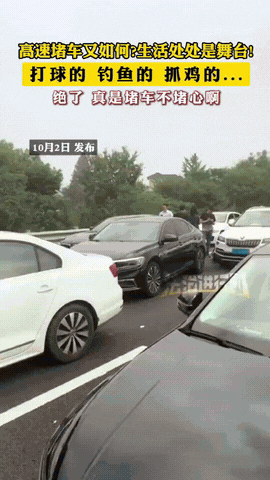 国庆假期,高速堵车又如何呢? 生活处处是舞台,有的人钓鱼、打球、抓鸡等等…… 真的是堵车不堵心! 国庆 返乡人高速堵车 高速出游 假期高速