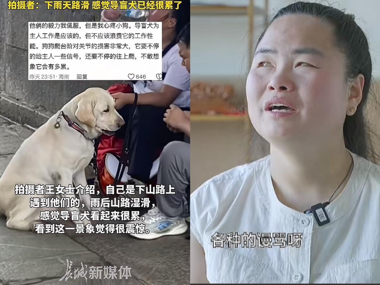 王女士总算为自己的行为付出了代价! 带导盲犬爬泰山后芬迪被带走, 按摩店因投诉关门,她被迫辞职,同时还要面对大家的各种质疑。 可仔细想想,这哪是“报应”,分明是她没把导盲犬的安危放在心上才酿成的后果! 网友从来不是反对视障人士出门,反而特别支持他们多去看看世界,但谁能接受让导盲犬扛着压力爬陡峭的泰山? 想爬山完全可以花几百块请个陪爬,有人搭把手还能照顾好狗,可她偏不。更让人无奈的是,到现在她好像还没明白问题在哪,只说早知道芬迪会被带走就不去了,压根没提狗的健康受没受影响。 导盲犬是视障人士的“眼睛”,不是用来满足个人爱好的工具,没学会善待它们,确实不该再拥有这份陪伴。你们觉得,要是真在乎芬迪,当初最该做的是什么?