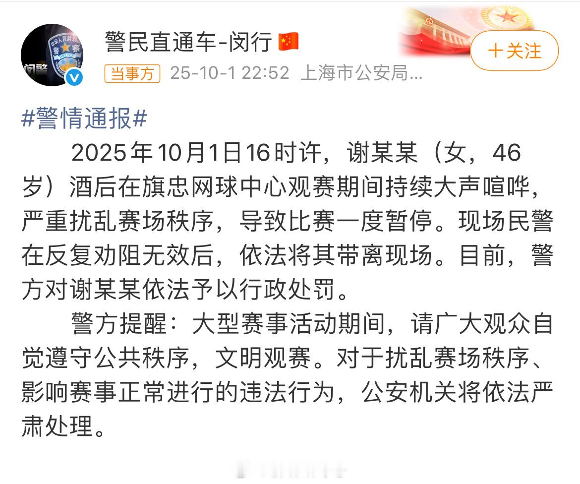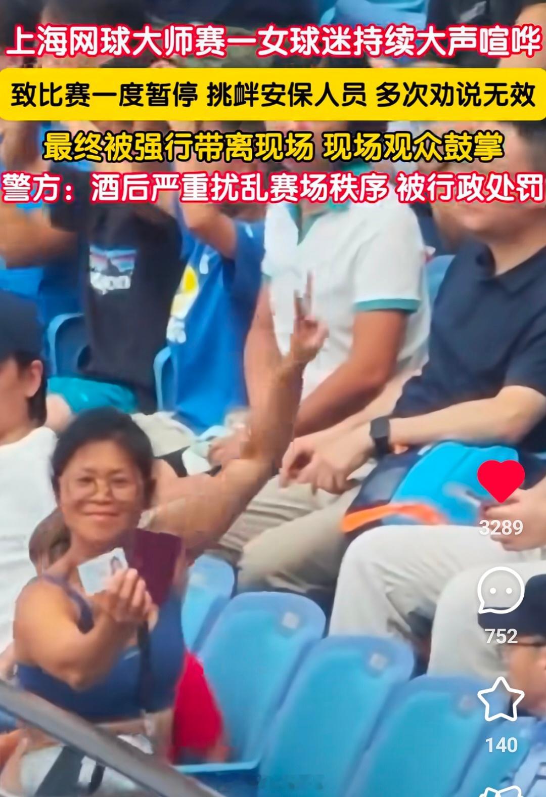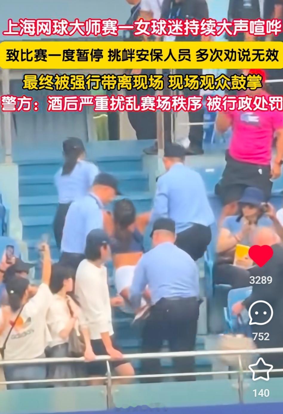 热点观点上海大师赛女球迷疯狂尖叫被抬出场警方通报女子酒后观赛大声喧哗