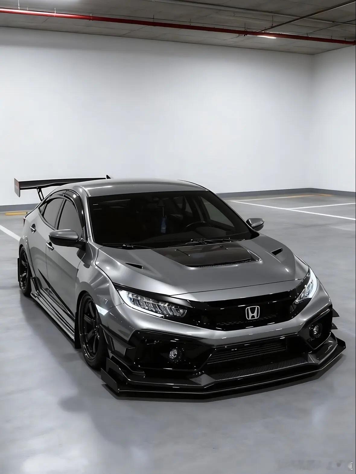 胖哥汽车频道[超话] 这色的银是真好看!本田思域改装车
