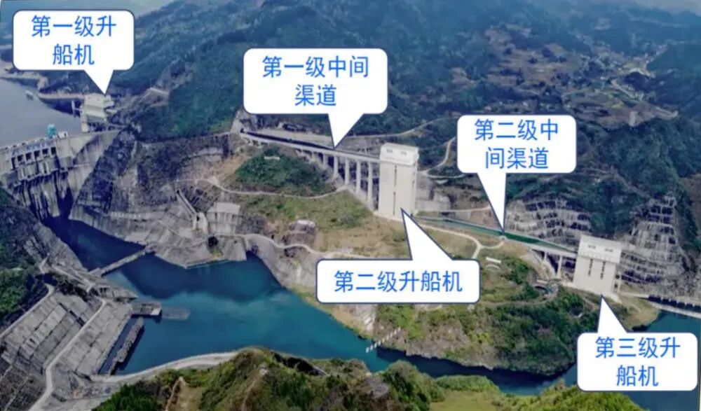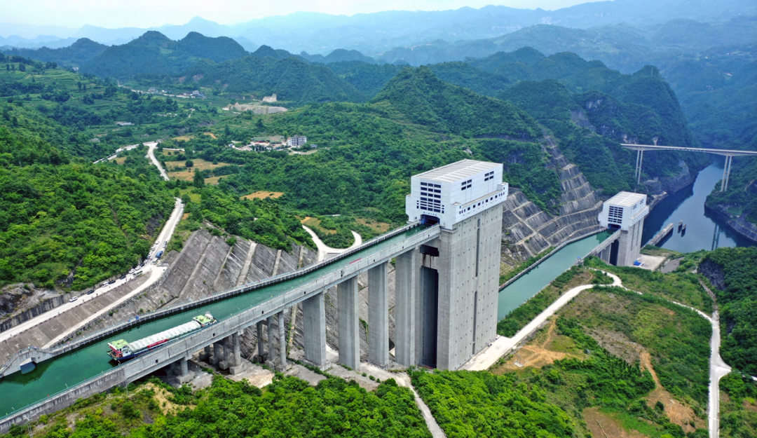 构皮滩水电站建成了世界首座三级升船机系统,被称为“升船机的博物馆”。