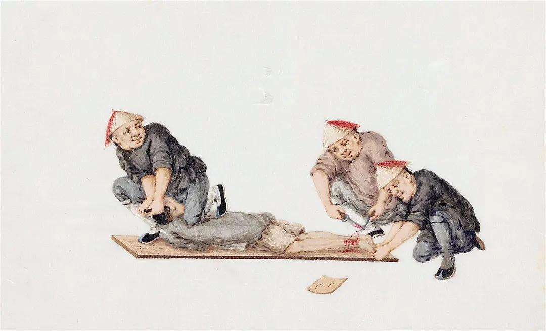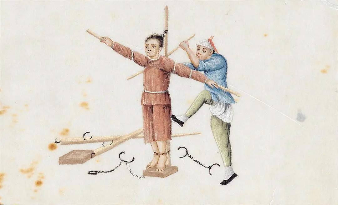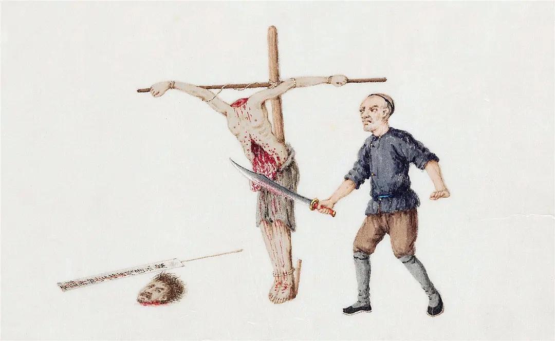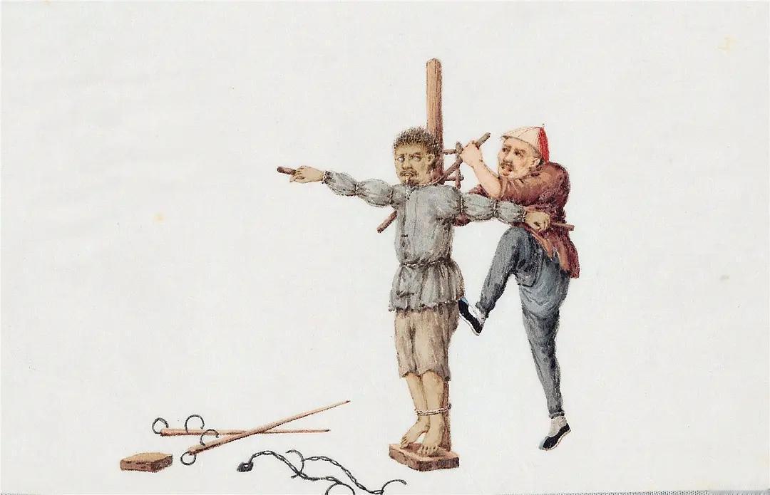 晚清时期的外销画(酷刑),现收藏于德国国家博物馆。