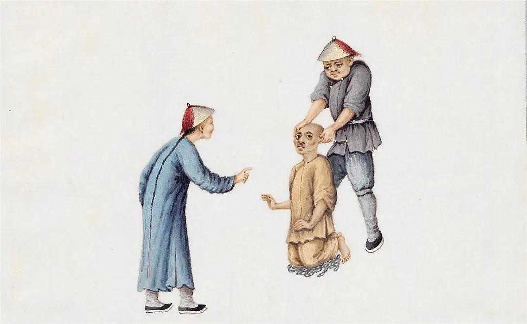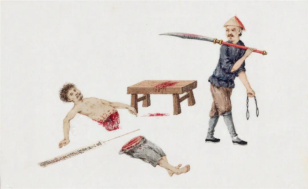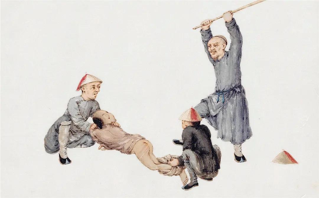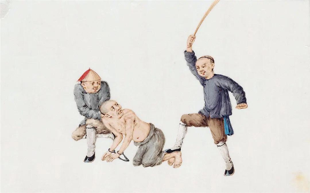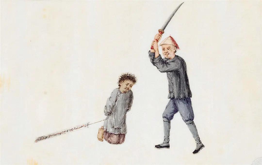 晚清时期的外销画(酷刑),现收藏于德国国家博物馆。