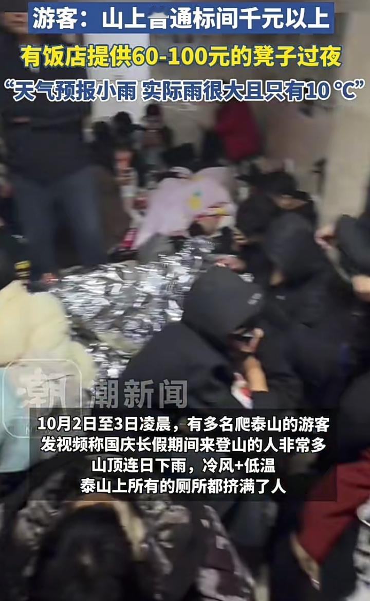 昨晚去泰山看日出的游客已经体验了一把在洗手间过夜的瘾,晚上山顶酒店爆满一间普通房