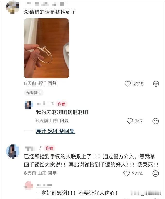 这事儿说起来也挺神奇的,就是九月份周杰伦在济南开演唱会嘛,有个山东的周女士,去看演唱会的时候,把自己戴的一个手镯给搞丢了,那个手镯可值钱了,要十一万块呢。 她后来在网上发帖,说自己手镯丢了,希望能有好心人捡到归还。谁知道,几天之后事情有了转机,9月25号发的帖子,第二天,有个杭州的网友认领了,说手镯是他捡到的,简直就是奇迹。 那个杭州的网友人真好,捡到这么贵重的东西,也没想着自己留着,周女士拿到手镯的时候,别提多高兴了,又发了个帖子感谢人家,说找回手镯真的太不容易了,还说以后一定要小心,免得再丢东西了。你看,杰伦的粉丝素质真高,人也善良。 不过有意思的是,有些人开始瞎猜,说这事儿是不是跟大数据有关系,说现在大数据这么厉害,是不是通过大数据定位找到的。也是,现在这技术说不好。 不过还有人讨论,说周女士是不是应该给那个杭州网友包个大红包,毕竟人家捡到这么贵重的东西,还给她送回来。我觉着吧,心意到了就行,重要的是那份信任和善良,那可比钱重要多了,这个社会还是好人多啊,暖心。 这事儿真的挺正能量的,现在社会上,这种事情太少了,这个事儿,我觉得,就是简简单单,人与人之间的善意,挺好的。 不管怎么说,这个事情的结局是好的,丢了的手镯找到了,也让人看到了人性的光辉,大家以后出门,还是得小心点,贵重东西要放好,要是真丢了,也别灰心,说不定也能像周女士一样,遇到好心人呢,对吧。