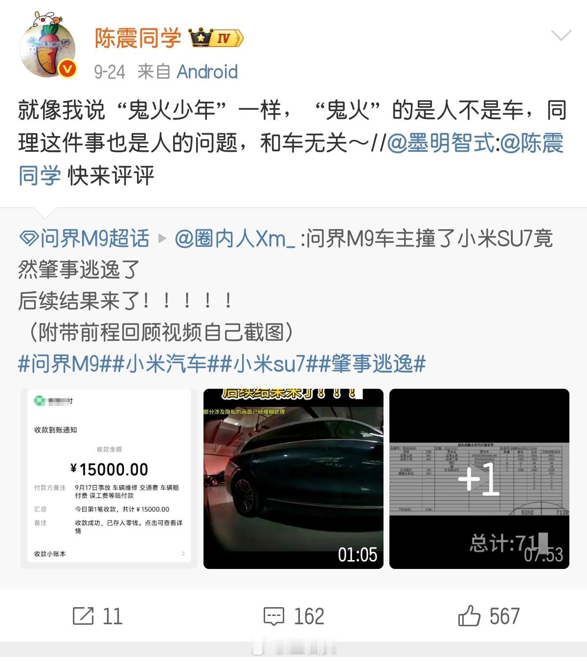 而且即便是撞了要修百来万,对于他来说也压根不是啥事,更何况这件事能让陈震吃的流量就值这点损失了。
