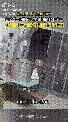 “这妻子反应堪称教科书级别!”浙江,夫妻开的早餐店,丈夫在检查电线时不慎触电了,顿时发出痛苦的喊叫,整个面部都扭曲了。屋里的妻子听到声响立马跑出来,反应迅速的从地上拎起一桶油去打丈夫的手,想把电线从丈夫的手上打掉! 可是第一次失败了,女子又迅速的整个人扑到电线上,用身体压住电线,这才把电线从账户的手里给拽掉了。 丈夫得救了,但整个人都被电懵了,坐在椅子上闭着眼睛缓神,有种劫后余生的感觉,当然被电了,身体还是很难受! 妻子看到丈夫得酒也是缓了一口气,同时也十分生气,想发脾气又没有忍心指责。更是庆幸自己救得及时丈夫没事,她紧紧的抱着丈夫的头,给丈夫依靠和安慰! 还好还好,幸亏没事,看的我都跟着紧张,生怕女子冲出来的时候一时着急直接就去用手拉丈夫了,那样两个人都完蛋了。还好妻子虽然慌乱但还思路清晰,做出了明智的做法! 可以看到妻子也是吓坏了,如果丈夫真的出事了,那她以后可怎么办! 再次提醒大家用电一定要小心再小心,电可不是开玩笑的,最好是安一个漏电保护器,这样一旦有事,电就自动断开了。该花的钱一定要花,千万不要存侥幸心理,一旦出事,那就是要命的! (视频来源:神州新闻,侵删[祈祷])