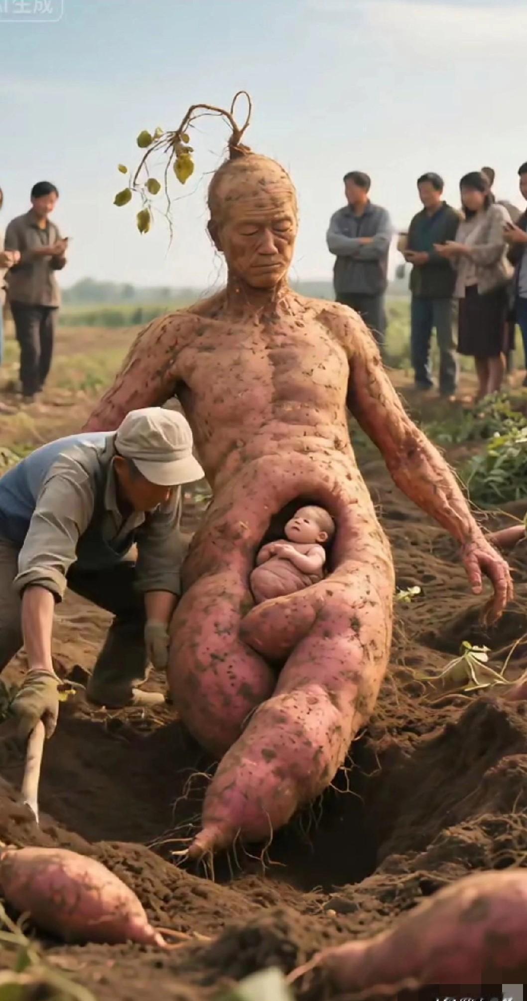 “两腿间还抱着个娃,这红薯成精了? ”11月山东寿光大集,老李头把一张打印照片往摊上一甩,围观瞬间三层。 网友@村头二花留言:“我奶说人形薯要供起来,不然半夜它先找你。 ”@农技小赵补刀:“别拜了,Stable Diffusion新模型,百万分之一自然变异它一秒给你量产。 ” 我搜了下,中国农科院去年报告确实记录过天然人形薯,全球也就十来例。 现在抖音AI农产品播放破5亿,有人拿同款图直播卖“灵根”,29.9一包普通红薯,一晚割了七位数。 更离谱的是,北京一家种业公司今年1月真把扩散模型搬进育种室,先跑图筛“讨喜脸型”,再反推基因,据说能提前两季锁定“高溢价外形”。 欧盟刚把AI农产品图列入广告法审查,怕的就是“假脸薯”挤掉真货。 老李头听完把照片翻面写了行字:“自然稀罕,AI管饱,买回家煮了,一样放屁。 ”