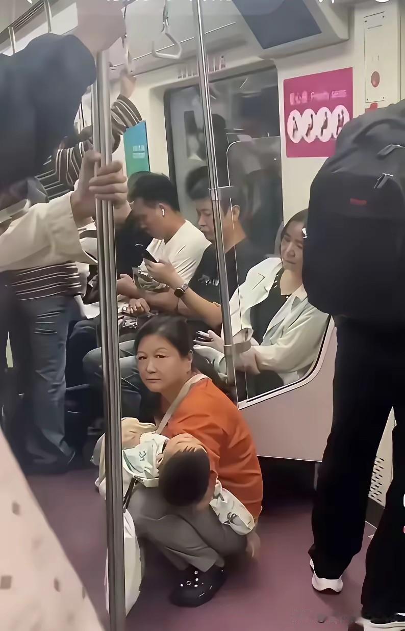 看到这种照片,心里有点难过,旁边的人都视若不见,没人让个座,看手机的,闭目养神的