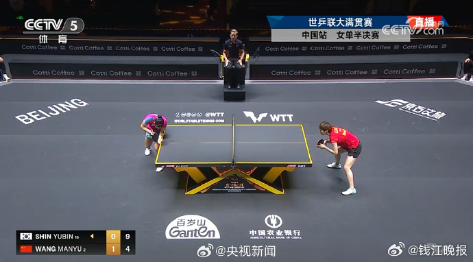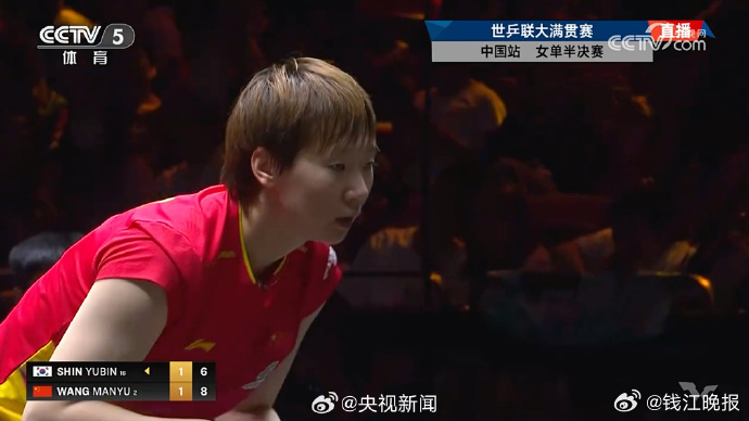 #王曼昱vs申裕斌#【孙颖莎王曼昱将争夺女单冠军,网友:已经在期待“神仙打架”了!】 #王曼昱鹰眼挑战失败##陈幸同受灯光干扰叫停比赛# 今天,2025WTT中国大满贯女单半决赛,4-1战胜申裕斌,晋级决赛。她将与会师,争夺女单冠军。国乒也提前包揽女单冠亚军,决赛见!(央视新闻、咪咕体育)