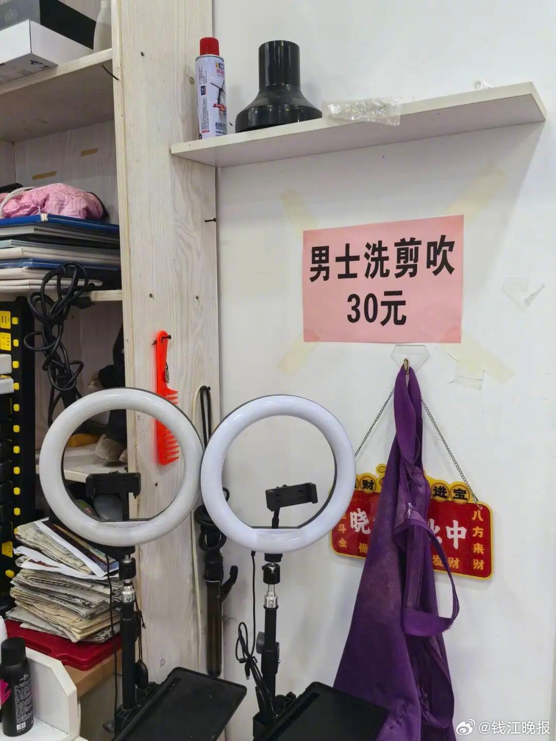 记者注意到,店内墙上标注的理发价格为女士洗剪吹45元/位、男士洗剪吹30元/位,与去年媒体报道时的价格一致。