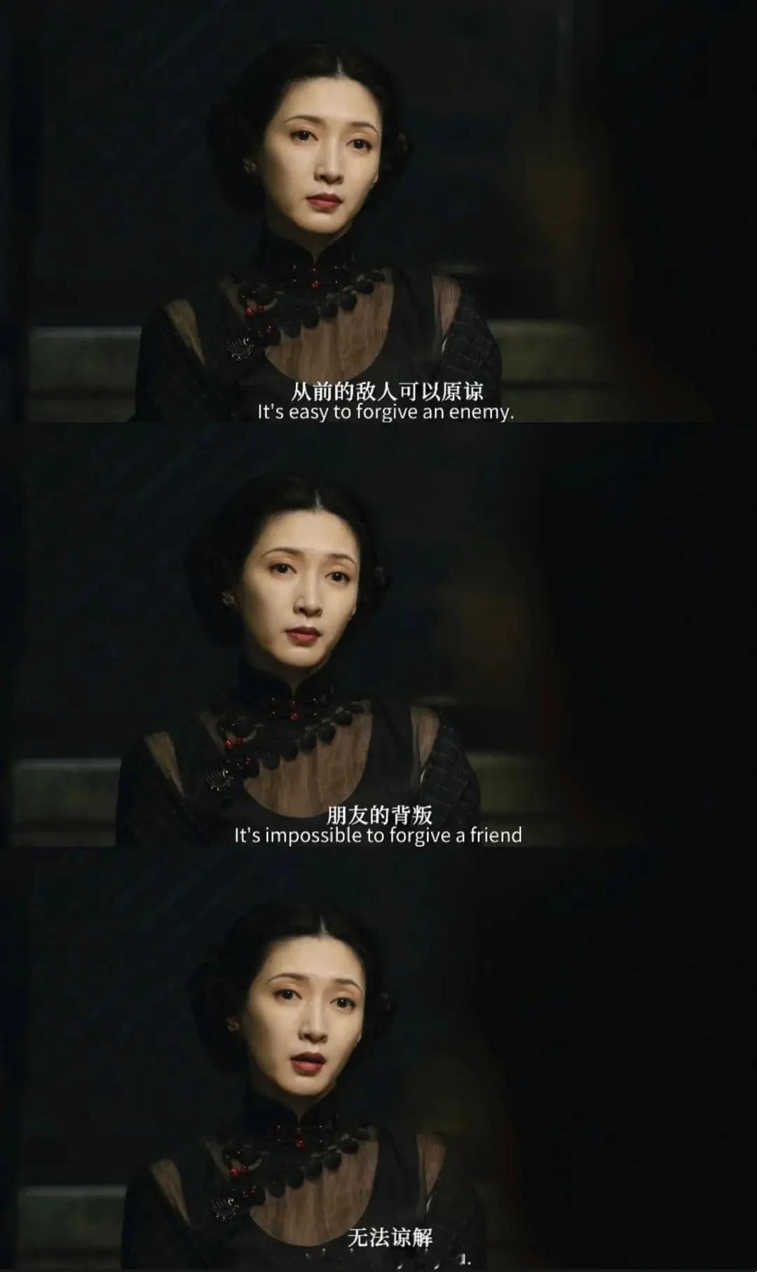 “从前的敌人可以原谅,朋友的背叛,无法谅解。”