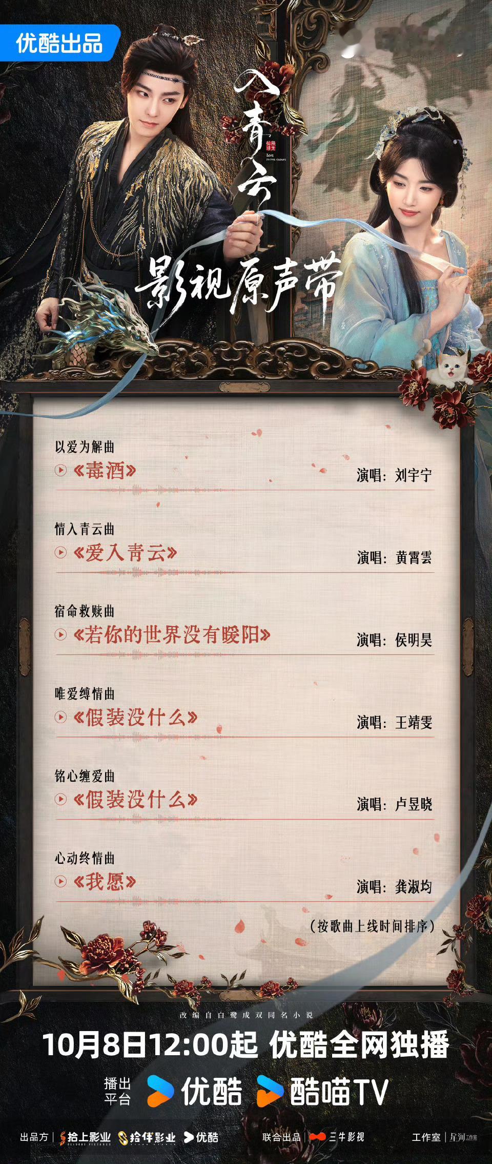 入青云OST阵容刘宇宁、黄霄雲、侯明昊等实力唱将集体空降!从宿命感满格的“以爱为解”到甜到发烫的“心动终情”,每首歌都精准狙击泪点与心动值。剧还未播,光听原声带就已经开始疯狂脑补剧情,期待值直接拉爆!