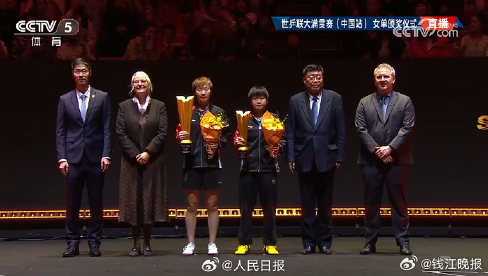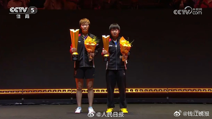【王曼昱孙颖莎领奖合影】#王曼昱4比2战胜孙颖莎##孙颖莎中国大满贯亚军# 恭喜首夺中国大满贯女单冠军!恭喜获得女单亚军!(人民日报)