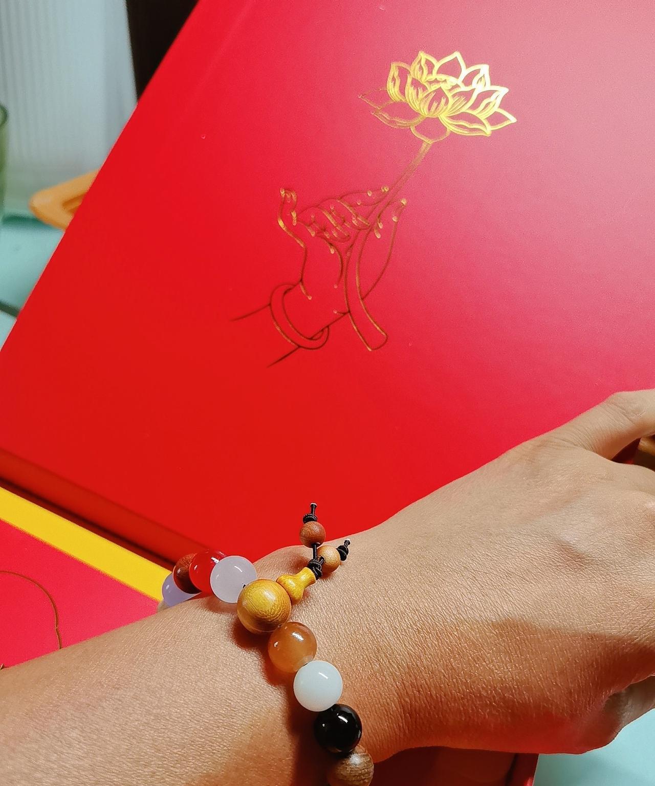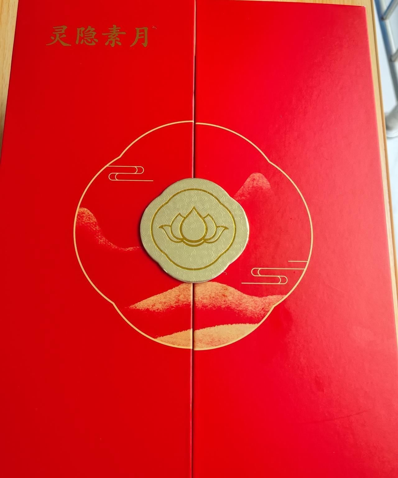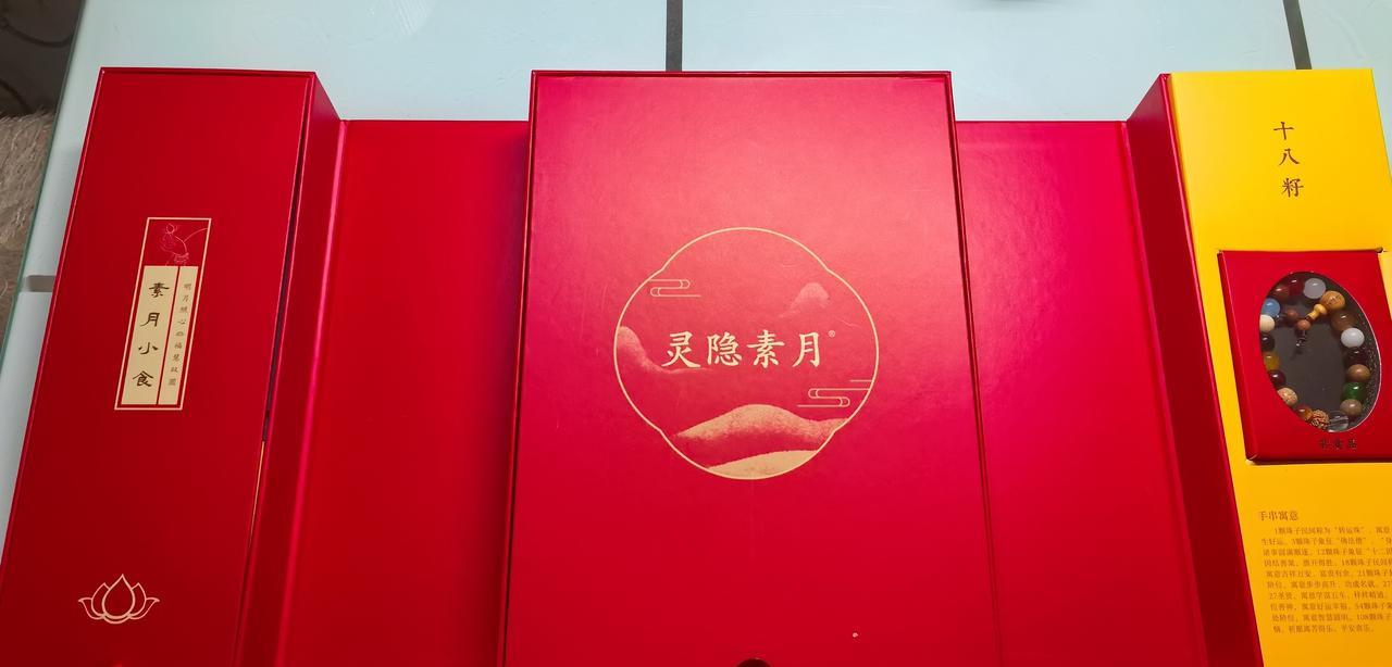 头一回见到这么独具匠心的月饼礼盒! 老公拿回来一盒月饼,名为“灵隐素月”,不知道跟灵隐寺有没有啥关系。 红色的外包装袋,红色的包装盒,上面雕刻一朵莲花,看着没什么特别。 轻轻启开莲花浮雕揭开包装盒,才发现里面的设计暗藏玄机呀,就像打开了一扇精致的屏风,又如翻开一本精美的画册。 经典的红色和黄色搭配,更显禅意满满。在佛教中,红色象征慈悲、吉祥、精进与驱邪,黄色代表尊贵、神圣、中道与和平。 中间的盒子有6块月饼。两块陈皮豆沙素月,两块黄精素月,两块石斛素月。 左边的盒子是素月小食,上写“明月照心,福慧双圆”8个字。里面有一罐八珍燕窝炖,一罐陈皮红豆沙,另有一小盒桃酥。 最让人惊奇的是还有一只手串,名为十八籽,寓意吉祥万安,富贵有余。 莲花,佛手,串珠,这盒月饼将中秋的浪漫与东方的禅意完美结合,真是创意十足,让人爱不释手,都舍不得吃了。 包装盒这么漂亮,那月饼也一定很好吃吧? 尝了一块陈皮豆沙馅和石斛豆沙的。嗯,跟普通豆沙馅儿的点心没啥区别。 祝大家中秋节快乐!月圆人圆事事圆。但愿人长久,千里共婵娟!