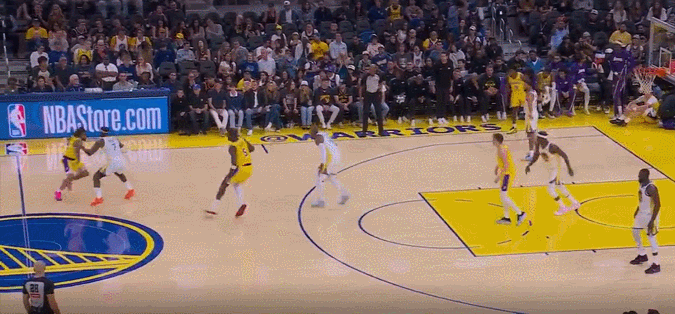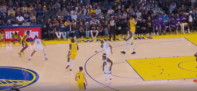 3.解放追梦游走,追梦单防时,霍福德会站好位置游走协防,完成封盖。