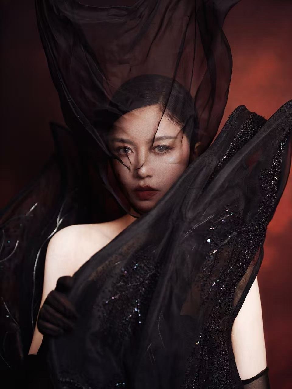 这居然是谭维维 谭维维音乐会造型太惊艳了!狭长眼线搭配轻纱遮面,黑色立体珠花短裙神秘感拉满,气场全开~这次风格突破太大,和以往完全不一样,狠狠期待今晚的声声世世音乐会!