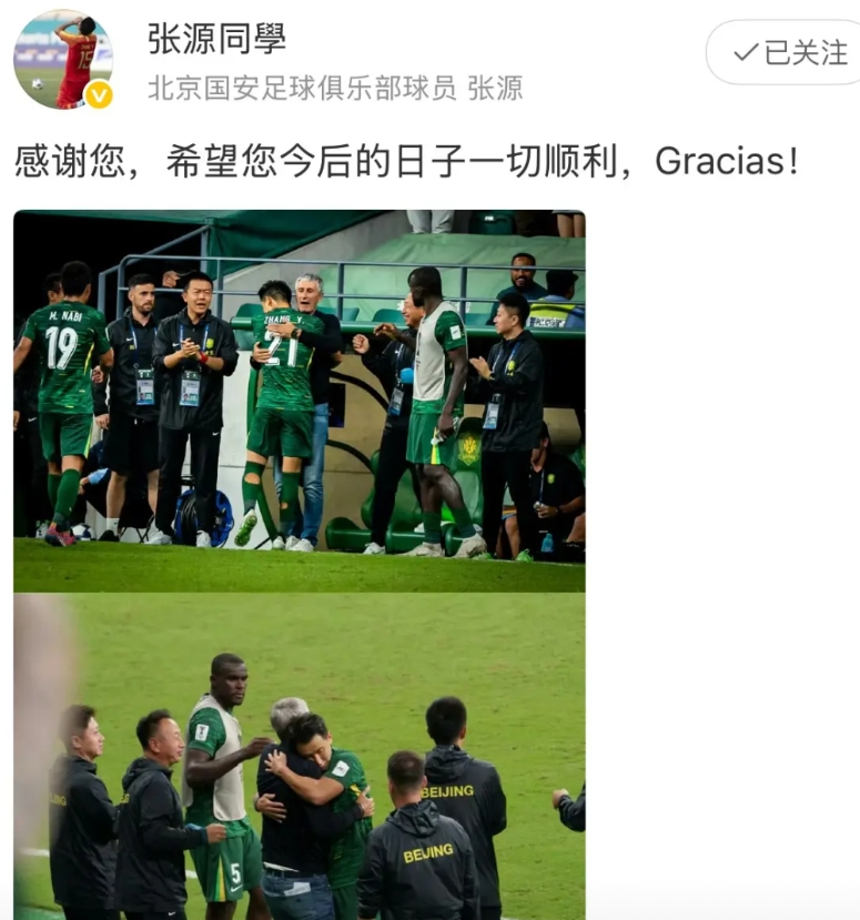 塞蒂恩下课后,除了俱乐部以外,北京国安球员仅有张源一人发文告别,可见其在队内与球员的关系也处的一般。