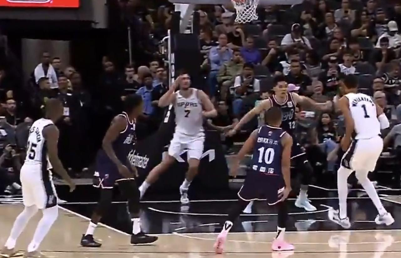 NBA季前赛,陈国豪下半场13分,卡明斯基、奥拉迪波双双20+,马刺轻取广州龙狮