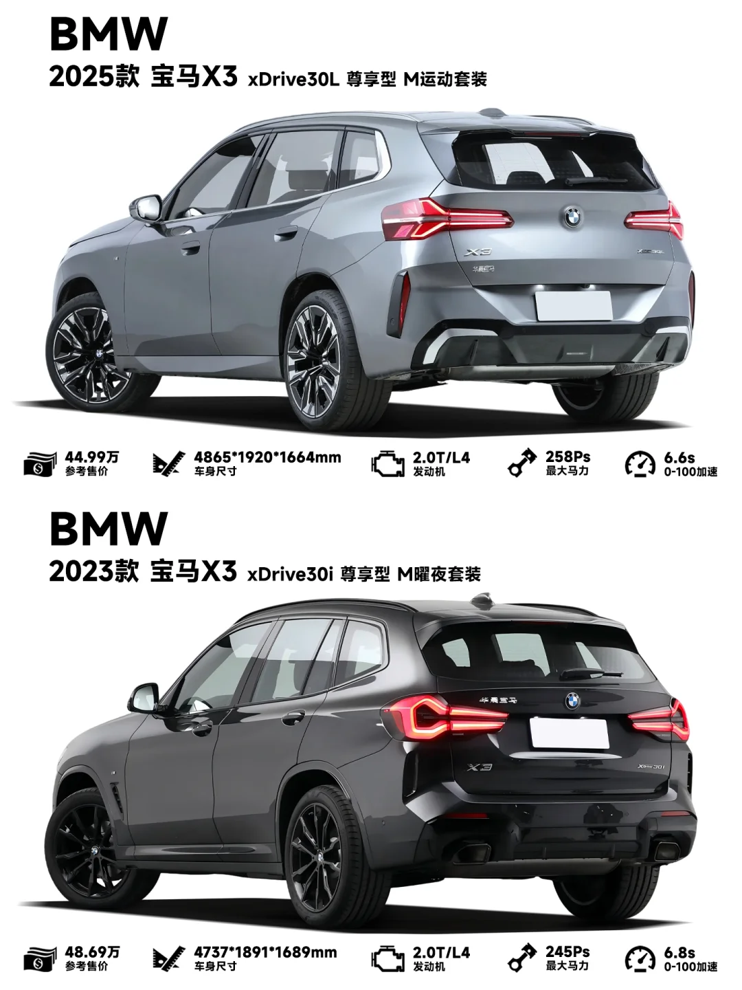 🌟🌟🌟🌟2025款宝马X3通过加长轴距、动力升级和智能进化,精准回应了中国消费者对空间和科技的核心需求。不过如果你是追求极致驾驶乐趣的传统用户,现款优惠后的2023款仍具吸引力;但若追求未来感和行政级体验,新款X3的革新力度绝对可以让你满意。如果手握40万预算,你会怎么选?