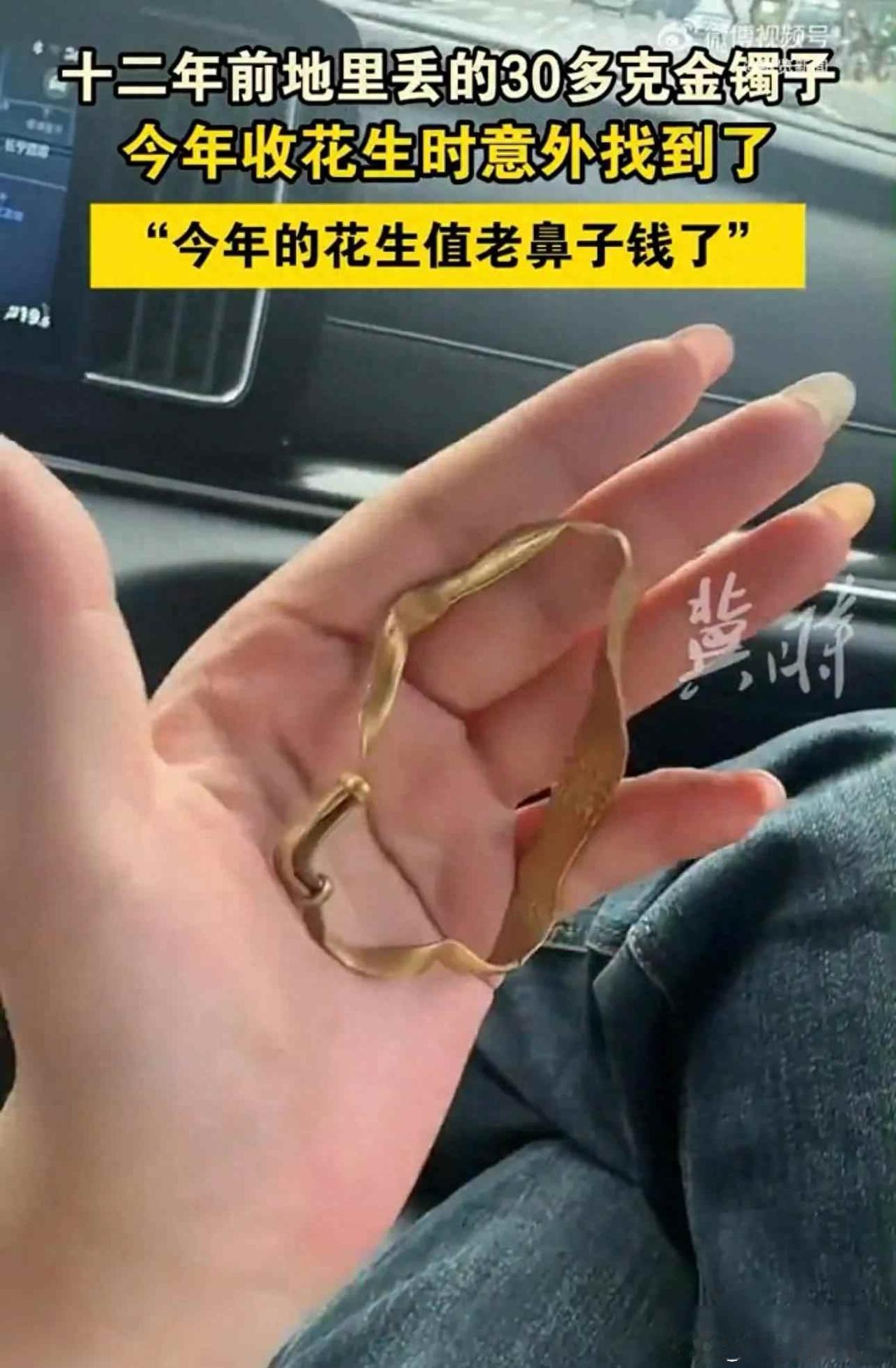 12年前姥姥在花生地里丢了30多克的金镯子,今年收花生时意外找到了,“今年的花生